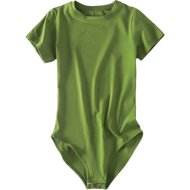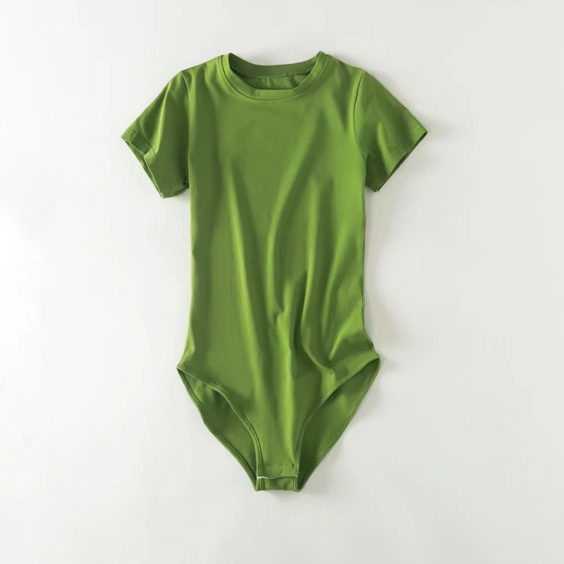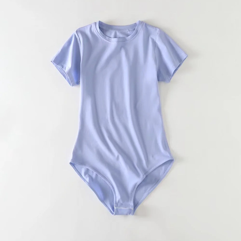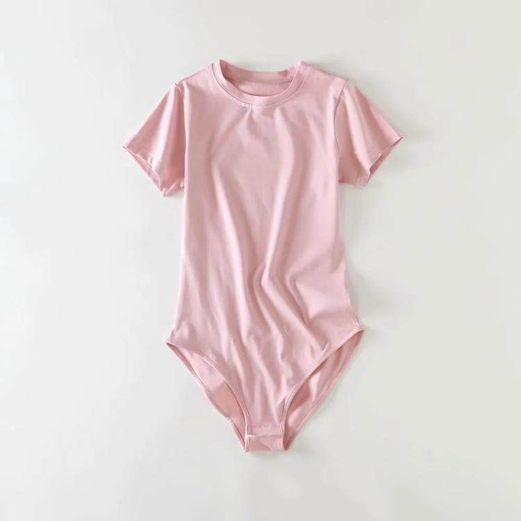 📚 短袖连体T恤韩版修身弹力显胸棉质圆领基本款薄新品连裆T恤连身衣
