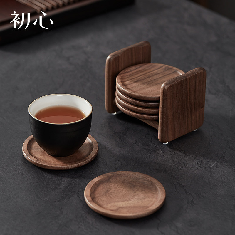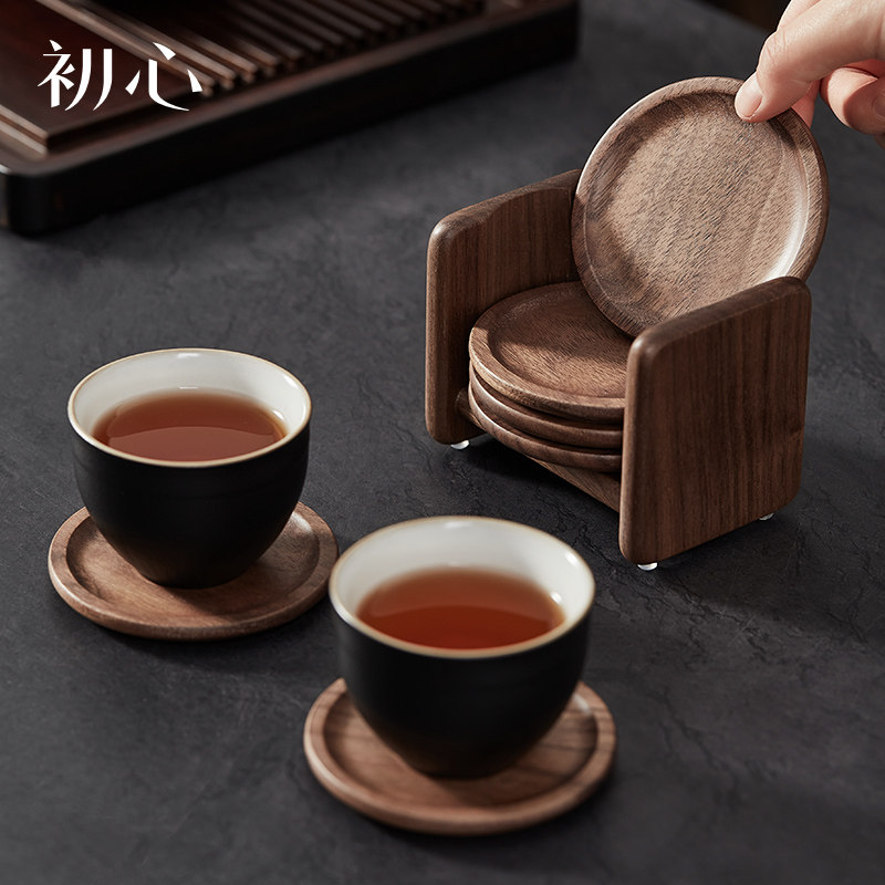 📚 初心胡桃木茶杯垫功夫茶杯托木质轻奢防烫茶道隔热垫中式茶具配件