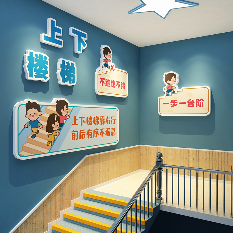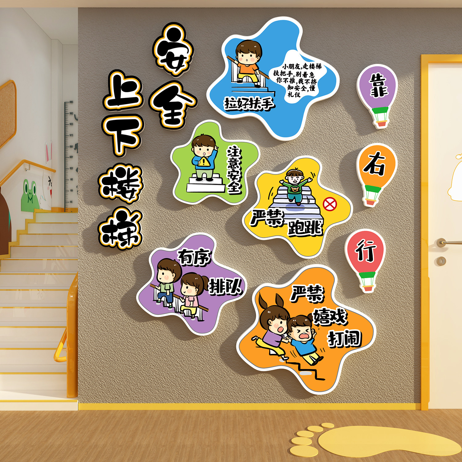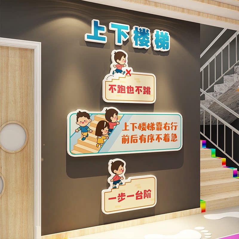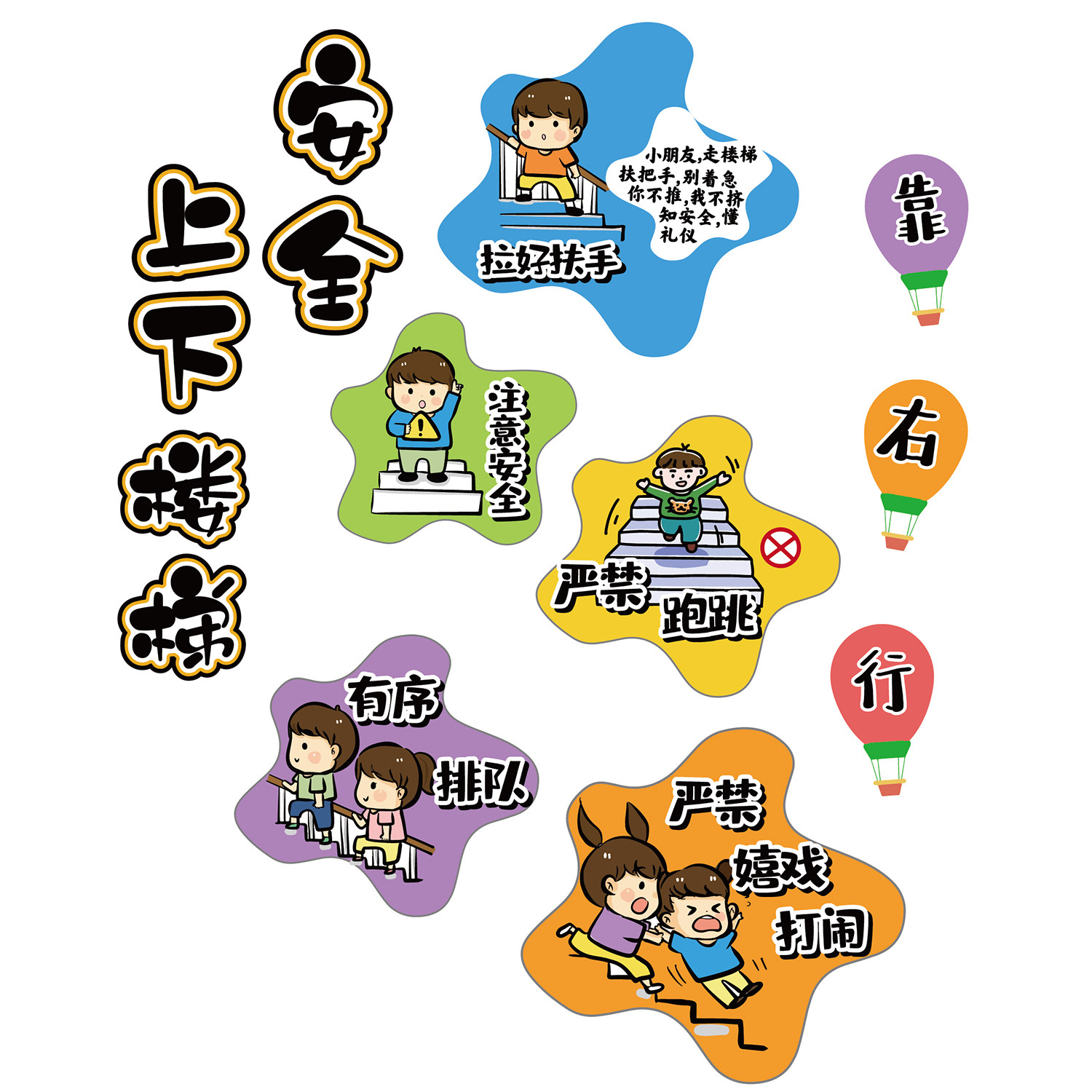 📚 幼儿园学校注意安全提示牌标识墙面装饰上下楼梯文化台阶贴托管班