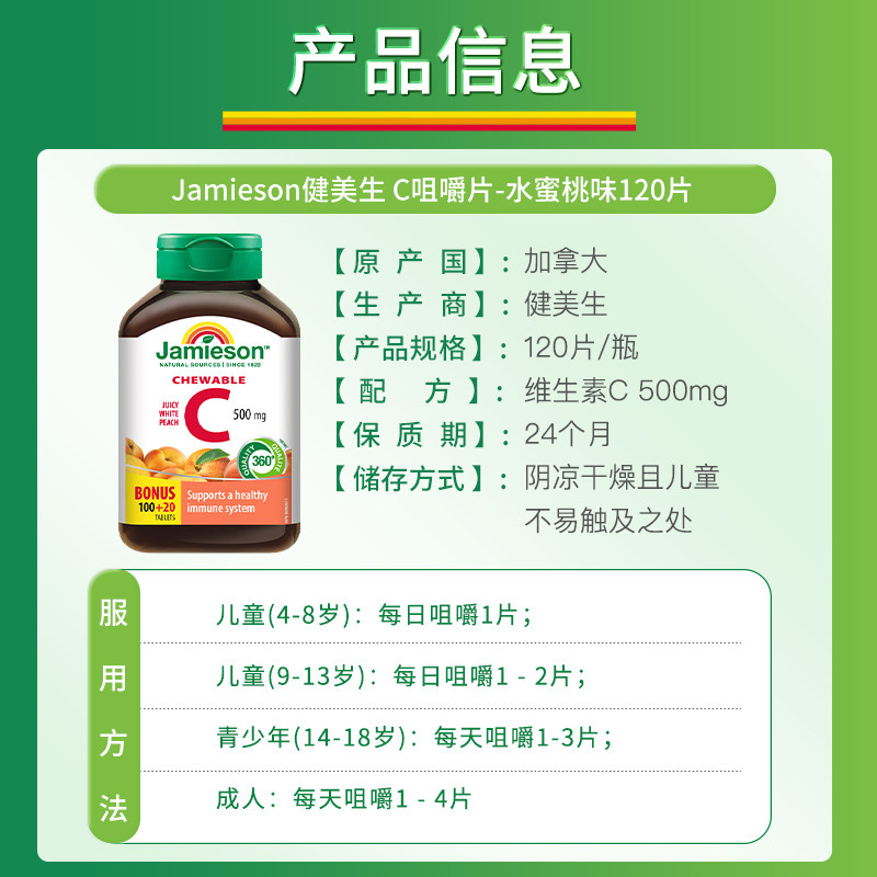 💥种草!Jamieson健美生儿童成人VC片,蜜桃味旗舰店折扣后仅需295!💖