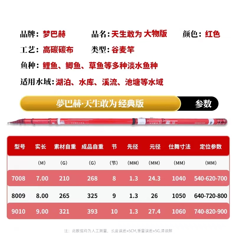 📚 梦巴赫二毛同款天生敢为大物版前打竿超轻超硬三定位谷麦钓竿鱼竿