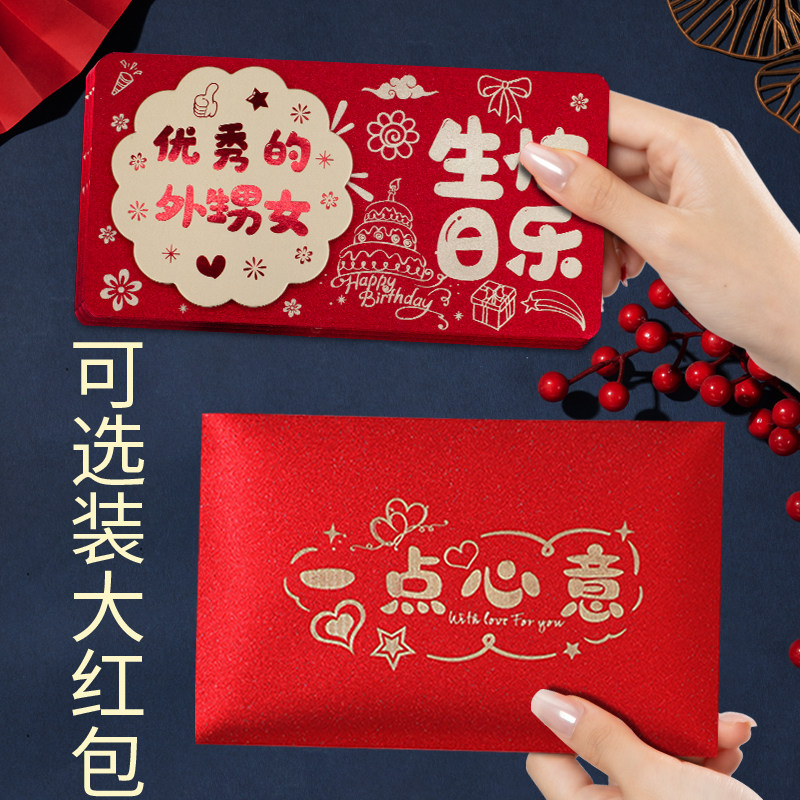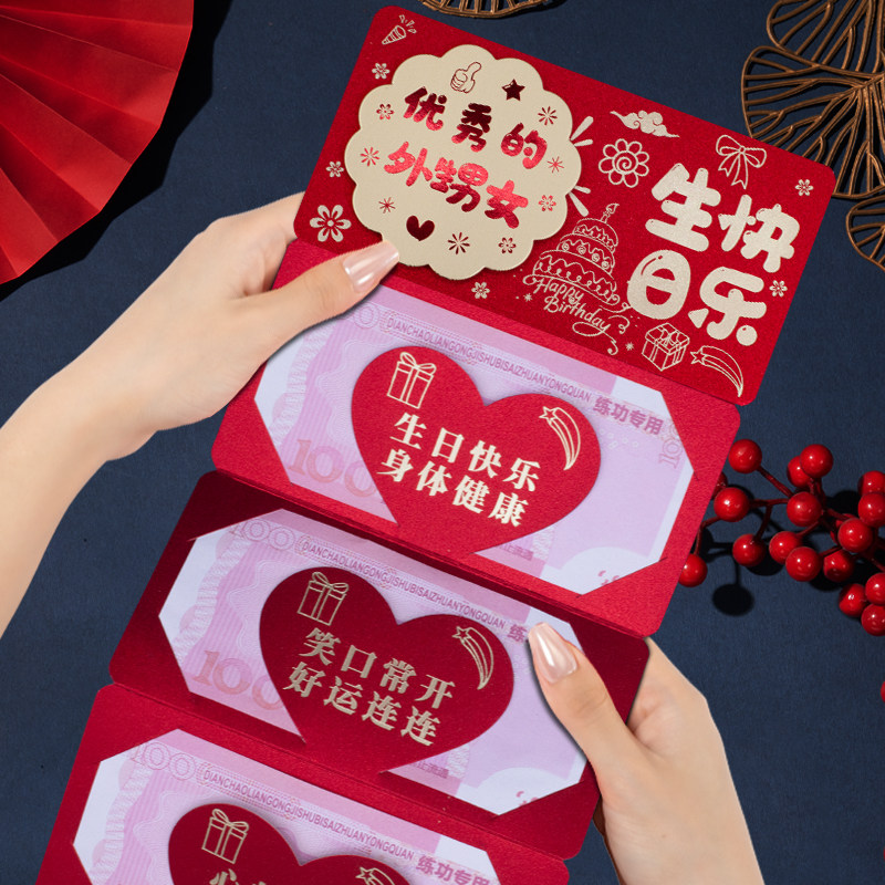 📚 优秀的外甥女生日快乐折叠红包创意周岁仪式感新款卡位红包利是封