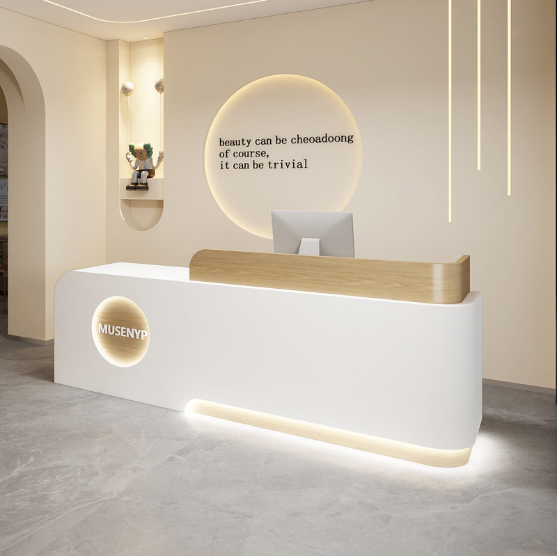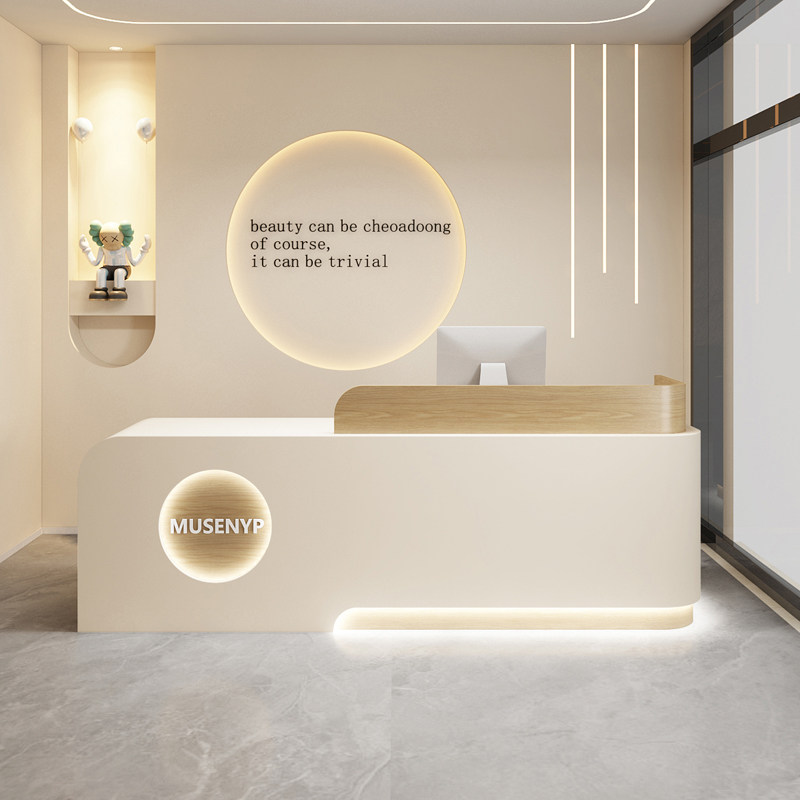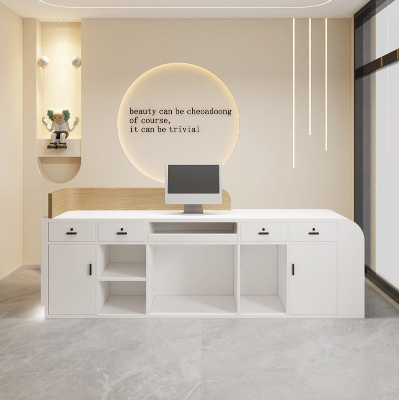 📚 吧台轻害高级感奶油风幼儿园艺术培训中心机构收银台童装店接待台
