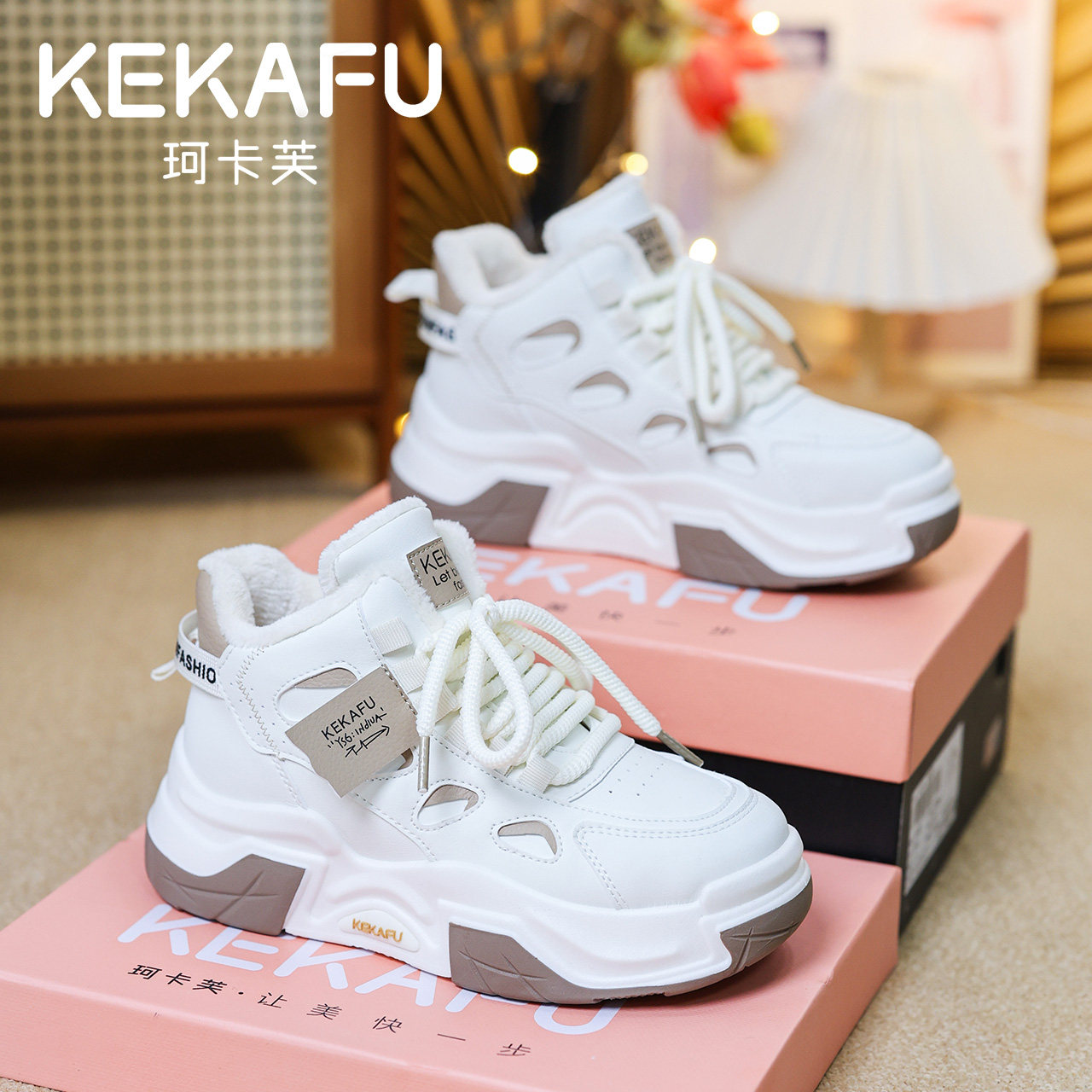📚 珂卡芙2025冬季新款高帮加绒加厚百搭ins潮鞋爆款板鞋女生休闲鞋