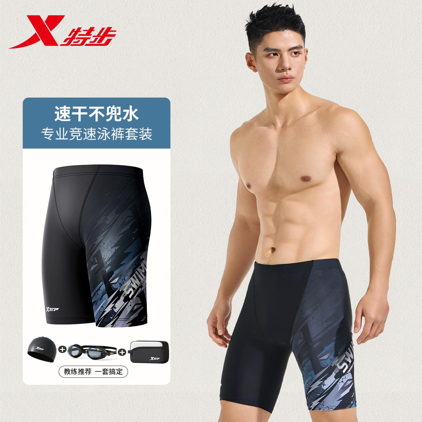男款特步游泳裤泳裤竞速