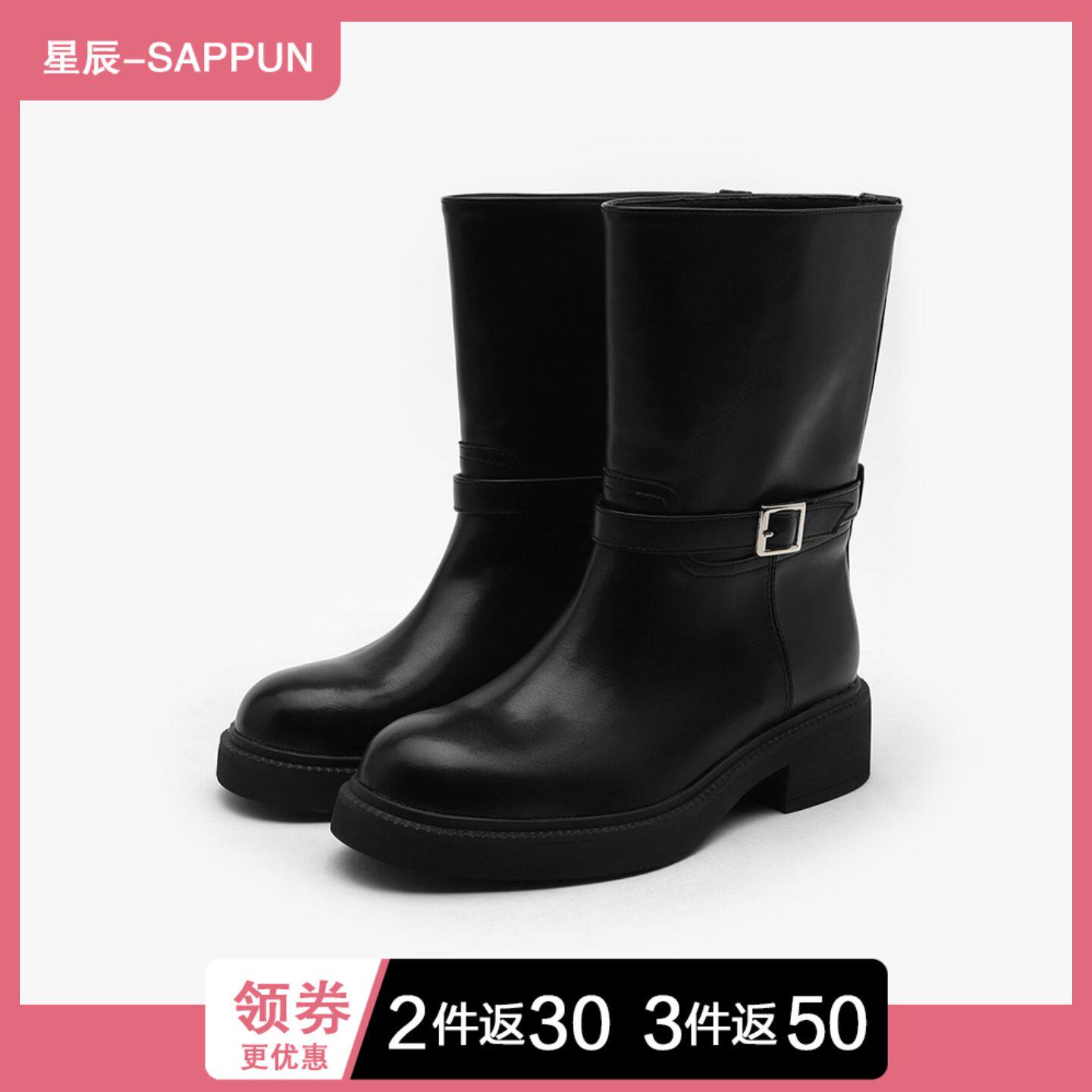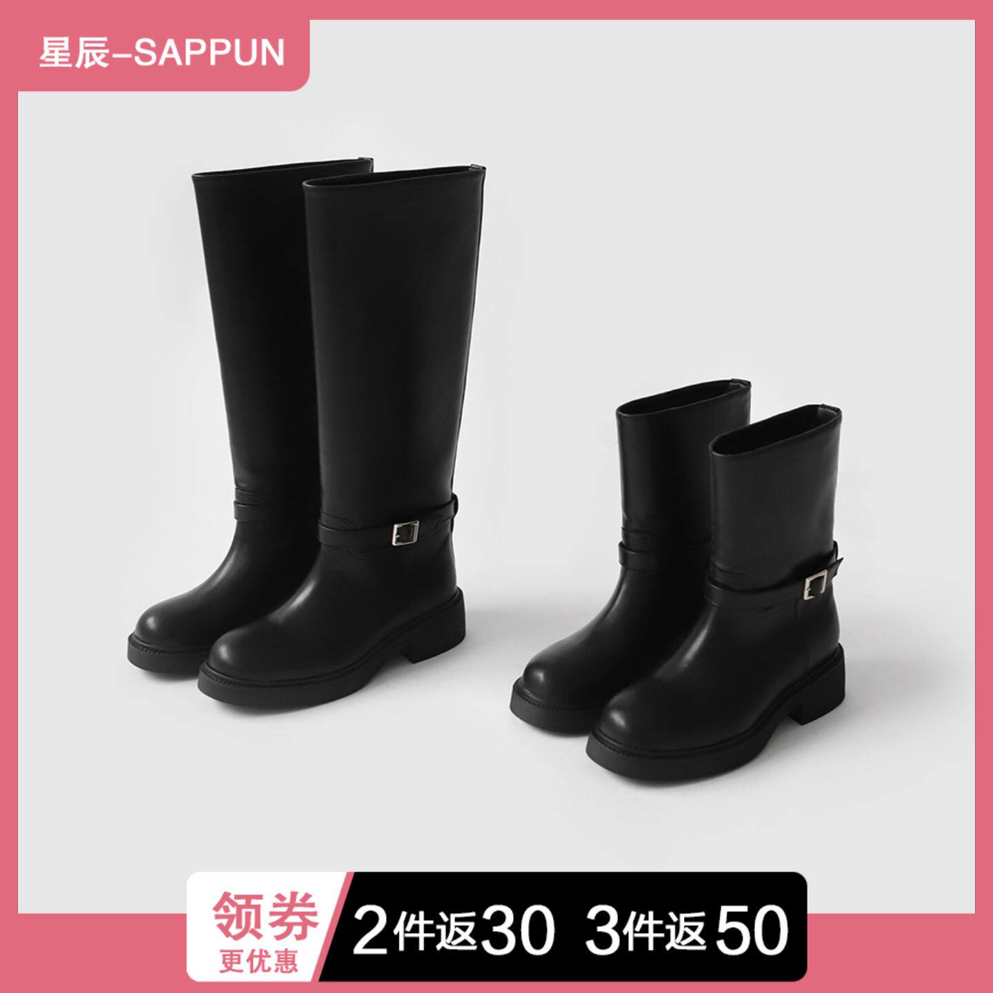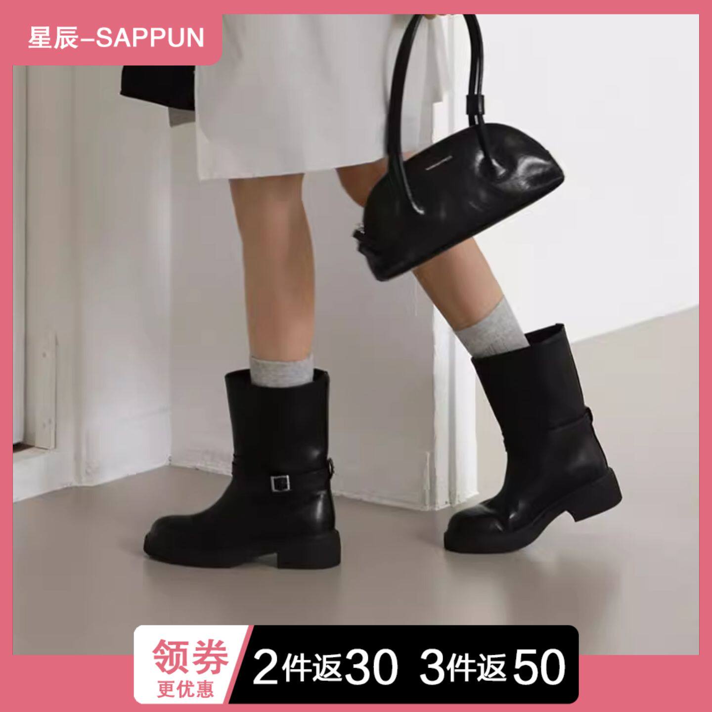 📚 SAPPUN 秋冬金属扣系带靴子 百搭款通勤中筒靴 星辰韩国代购