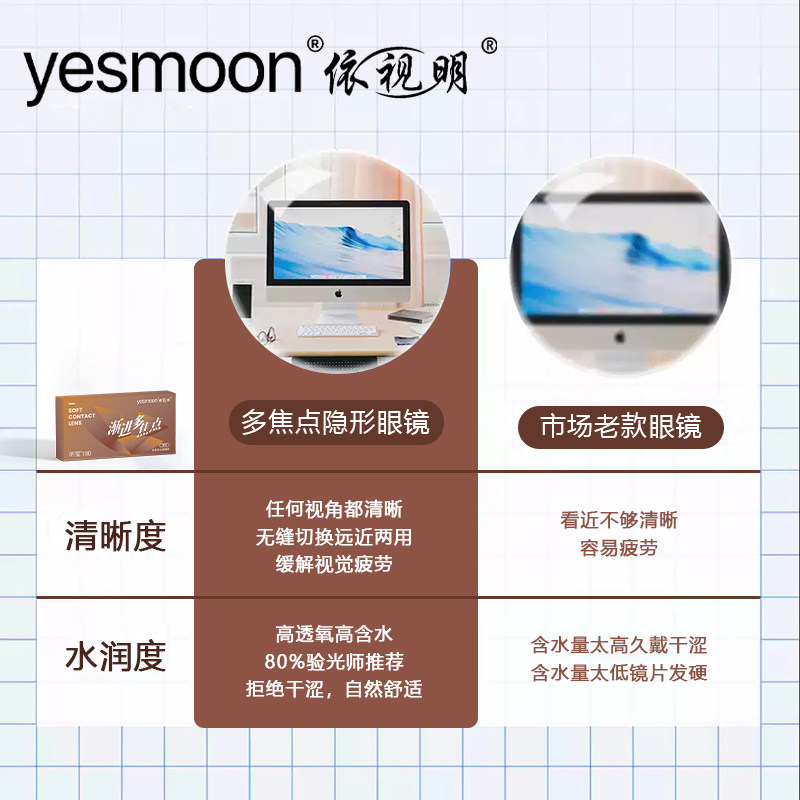 💡使用体验:这款隐形眼镜的优点真的太多了!首先,它的舒适度让我无法抗拒。佩戴起来轻盈透气,长时间佩戴也不会感到疲劳。其次,它的渐进多焦点功能让我能够更好地适应不同距离的视觉需求。而且,它特别适合老花加近视的人群,远近两用,让我在各种场合都能自信地展现自己的魅力。