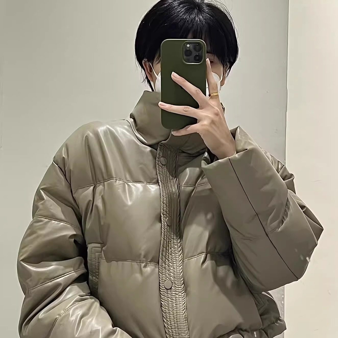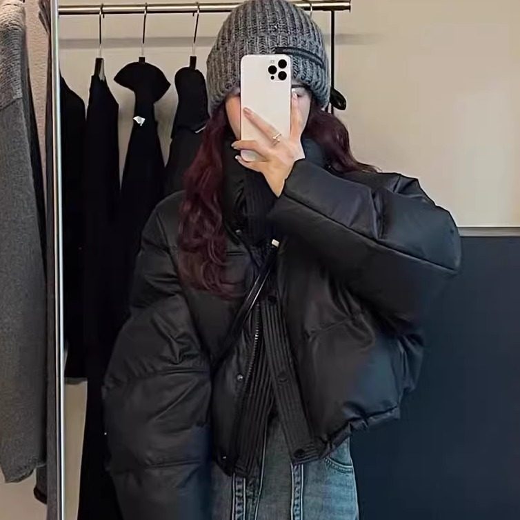 📚 2024冬季新款免洗PU皮羽绒服女短款加厚立领肯豆面包服小个子外套
