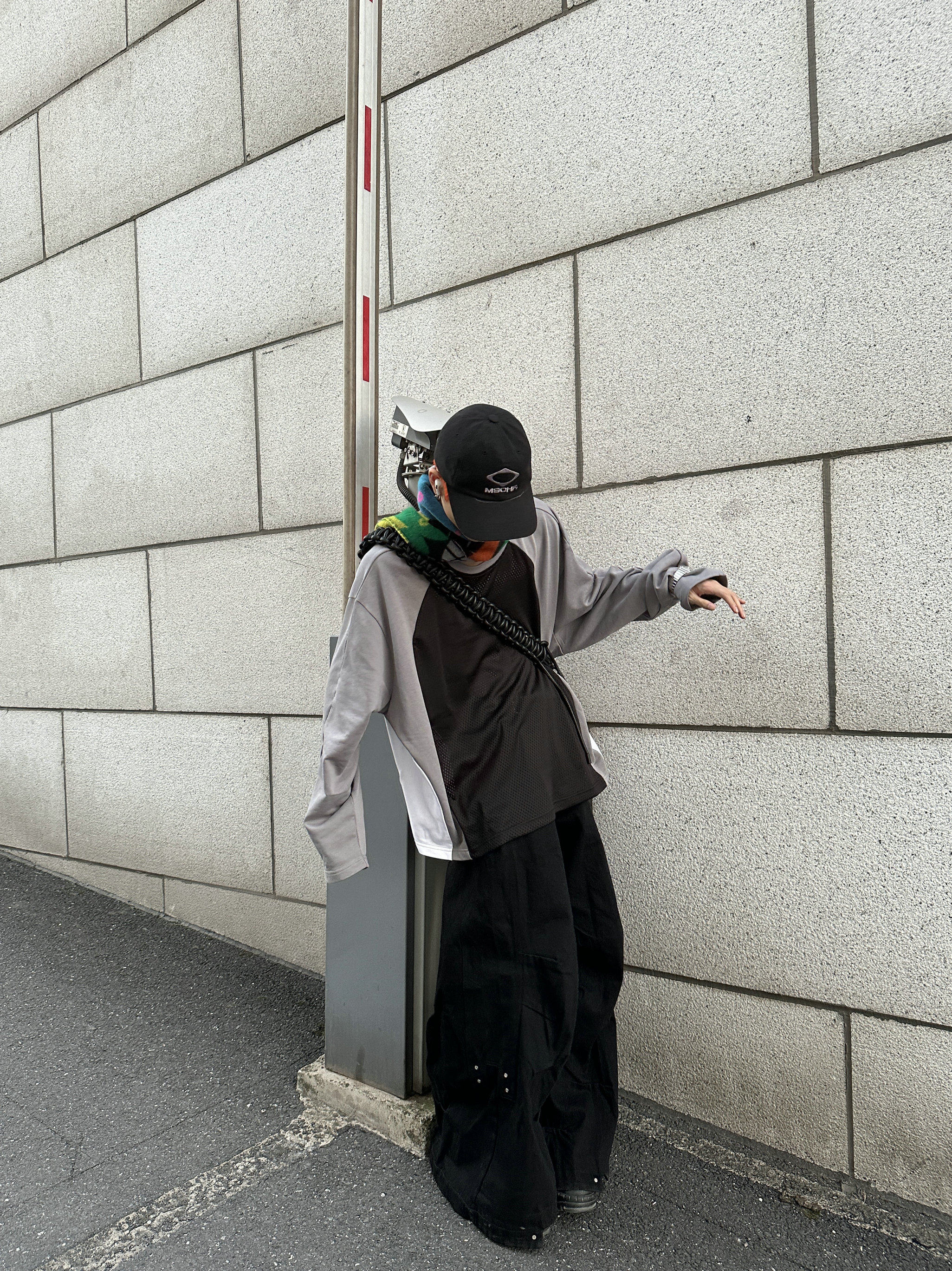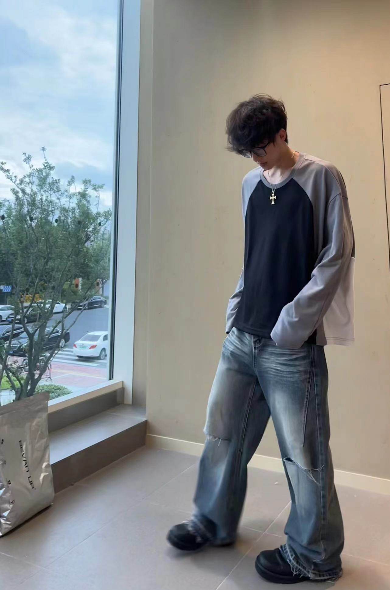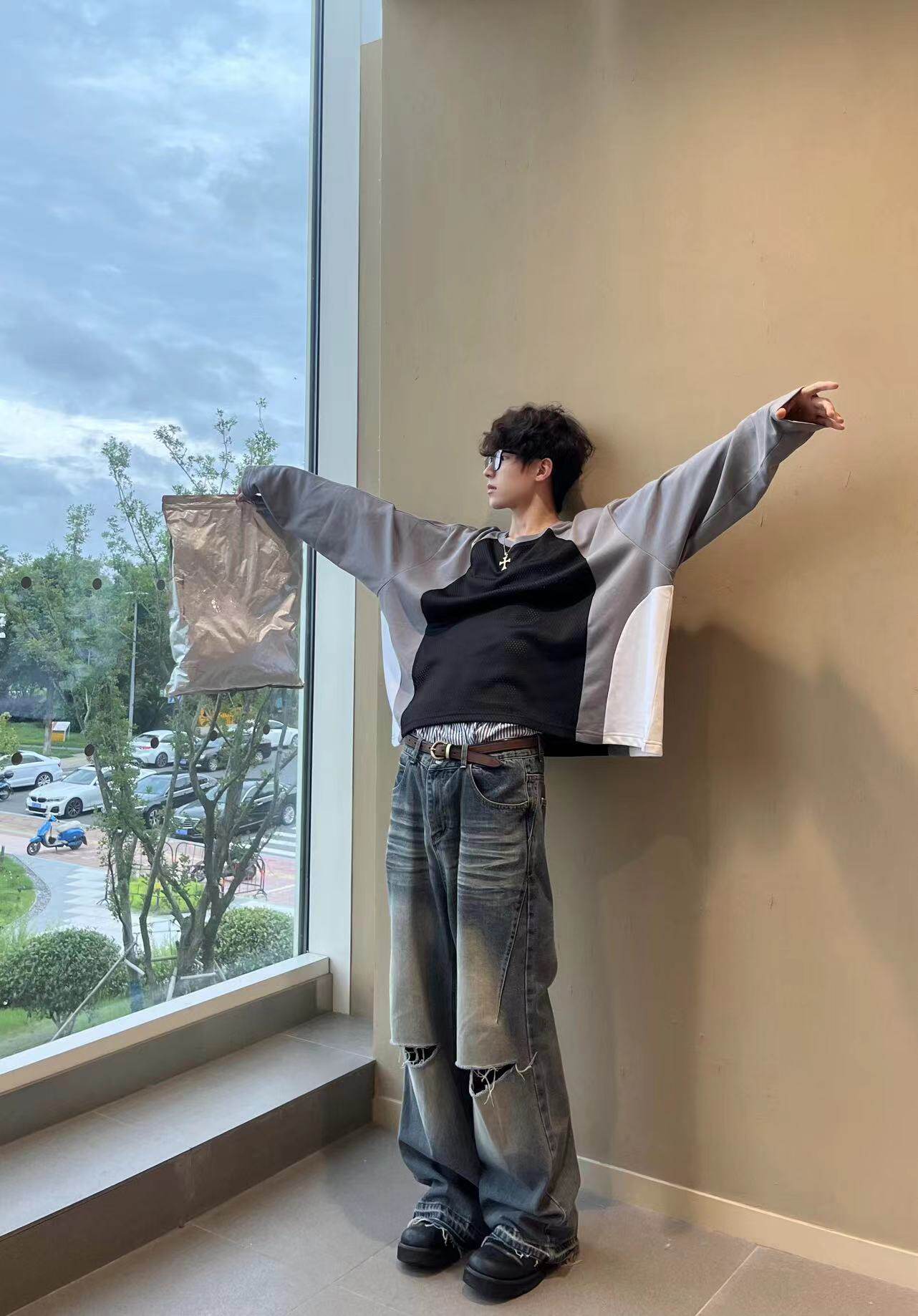 📚 REBELTOREBEL 现货!三色拼接网眼面料舒适长袖大廓形宽松卫衣T恤