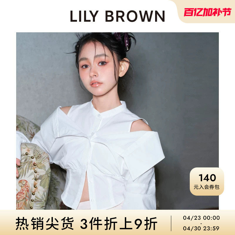 📚 LILY BROWN春夏款 甜美露肩翻领假两件收腰衬衫LWFB241154