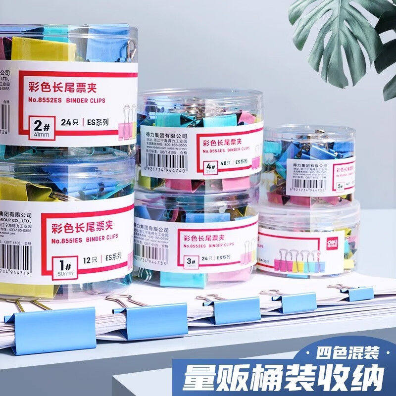 📚 得力长尾夹大号中号小号彩色文件小夹子铁票照片夹试卷票据发票书夹家用多规格混合装文具办公用品票夹燕尾夹