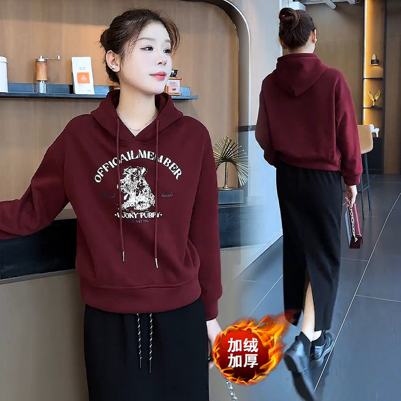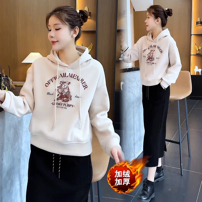📚 短款连帽卫衣女士2025秋冬季新款小个子爆款加绒加厚休闲套头上衣