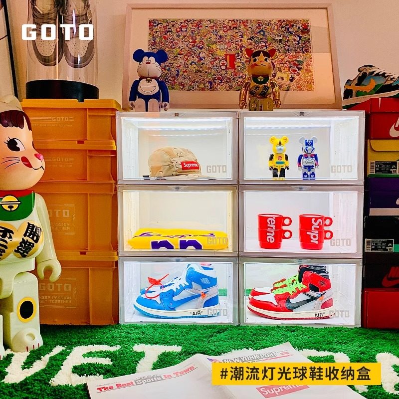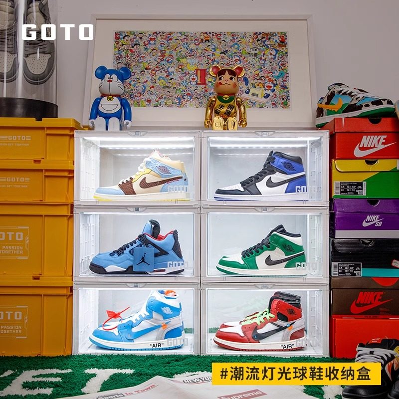 📚 GOTO鞋盒灯光智能声控发光球鞋aj透明收纳盒网红展示鞋墙鞋子收纳