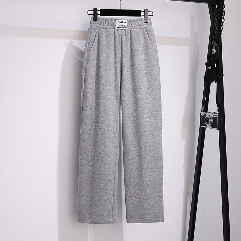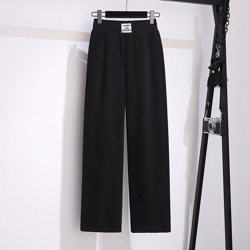 📚 加肥特大码运动阔腿裤女春秋300胖mm200斤宽松休闲加绒直筒卫裤子