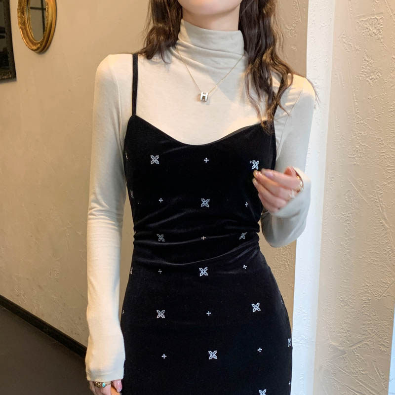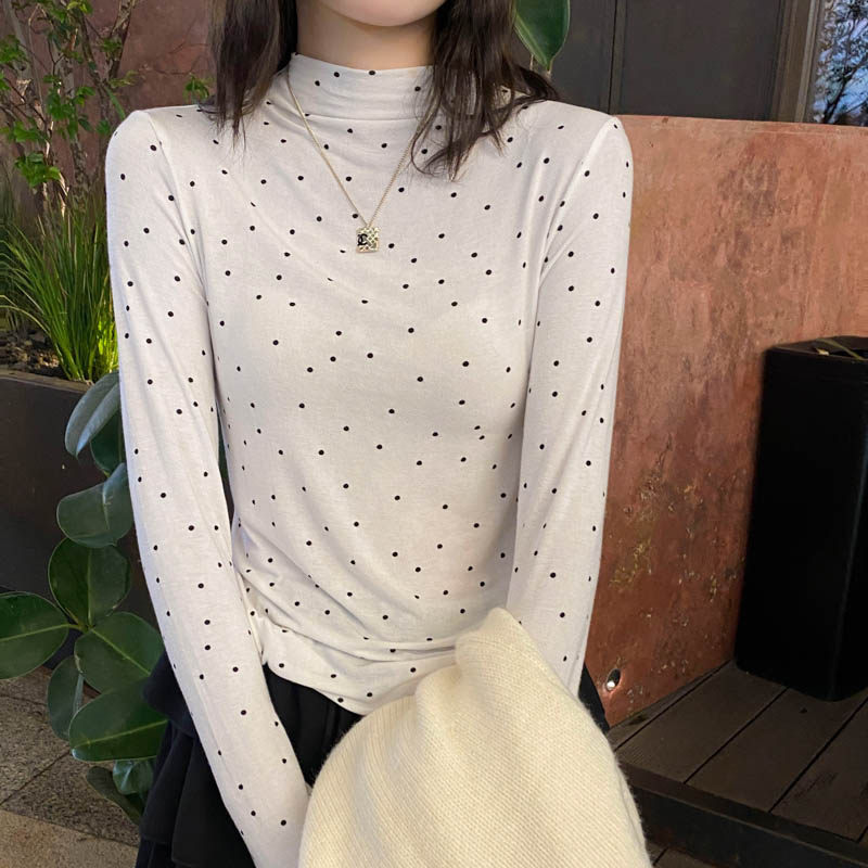 📚 白色波点半高领打底衫女士内搭2026春装新款显瘦修身长袖t恤上衣