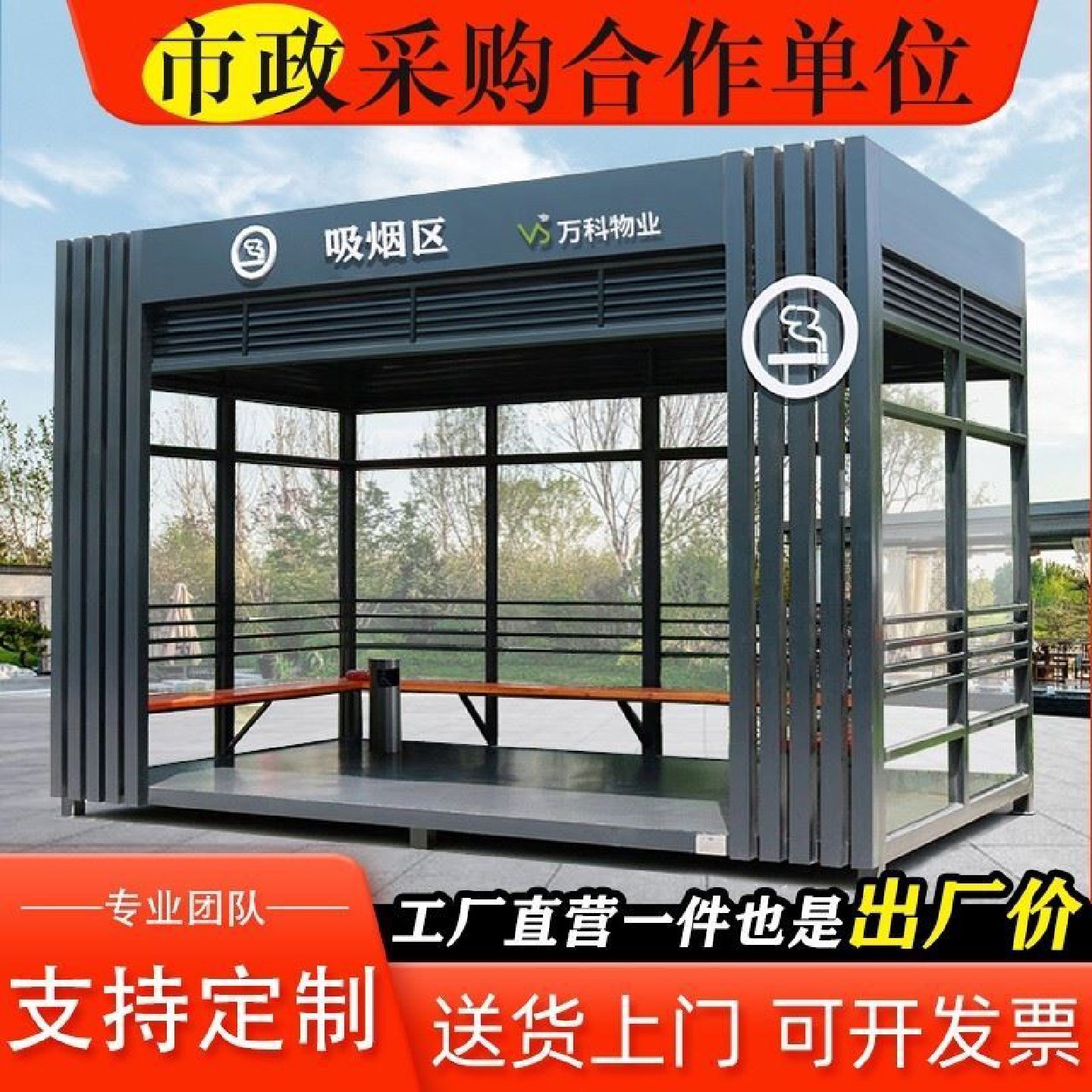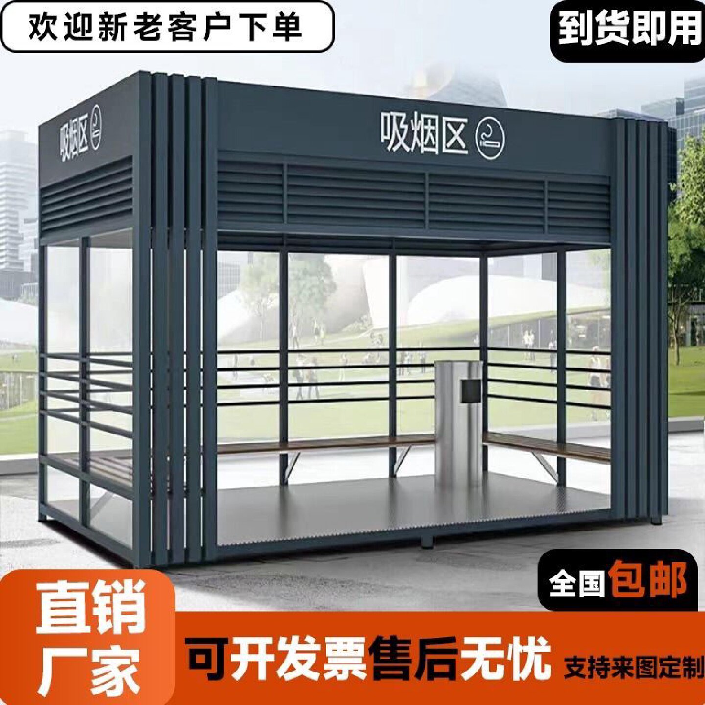 📚 户外吸烟亭环保吸烟室公共园区厂区定制成品钢结构休息室岗亭厂家