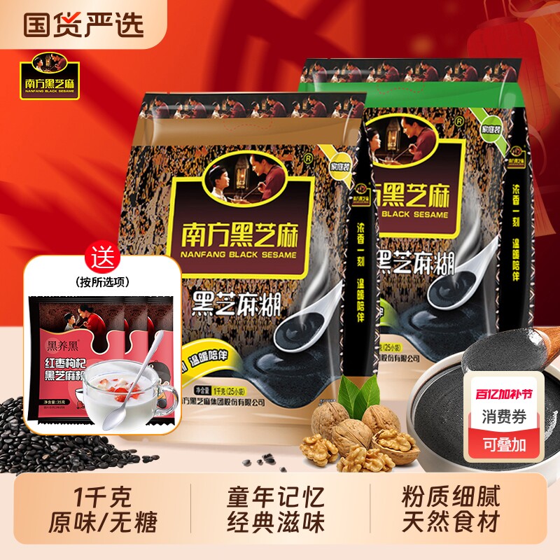 📚 南方黑芝麻糊原味/无糖1000g袋装营养谷物早餐代餐冲泡即食芝麻粉