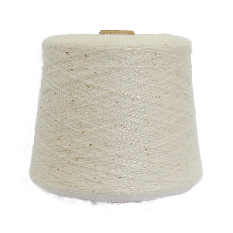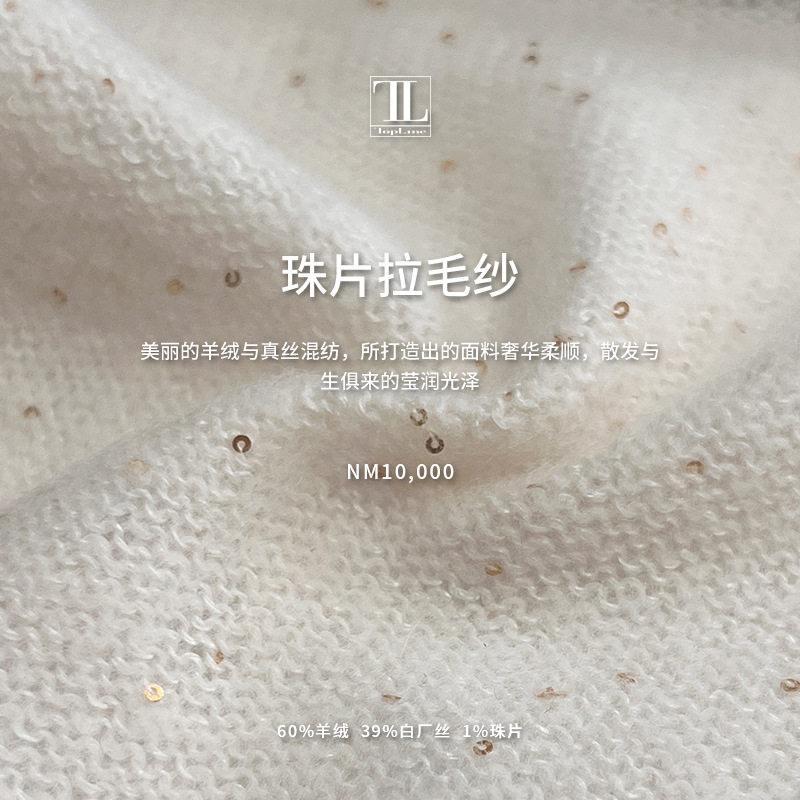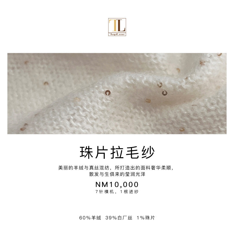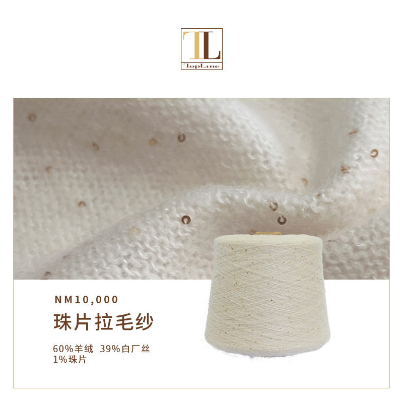 📚 羊绒白长丝混纺纱线 优雅珠片拉毛纱 手感柔顺