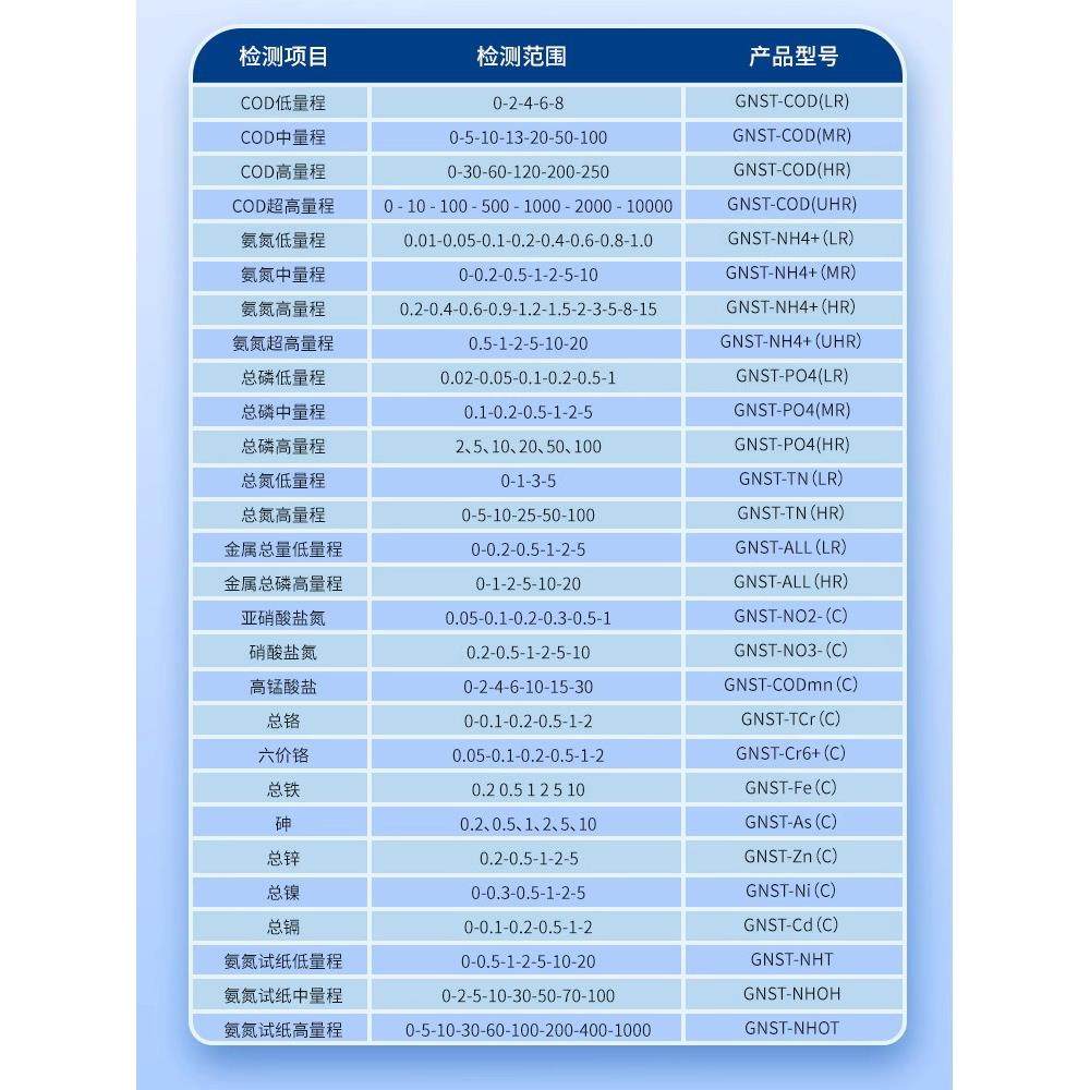📚 COD氨氮总磷总氮快速测试包污水铜铁镍锌余氯检测试纸比色管测定