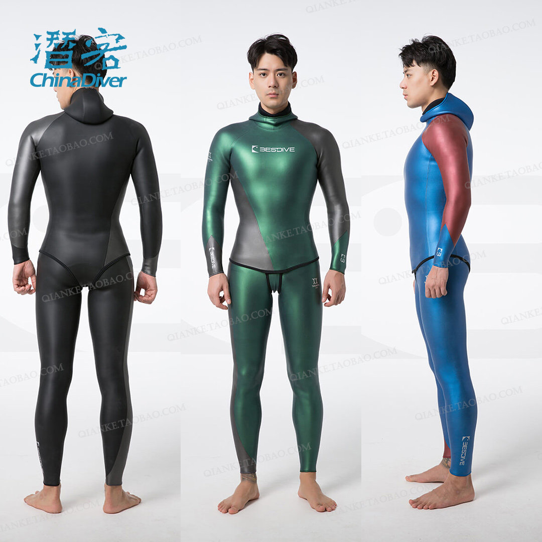 📚 BestDive 自由潜湿衣炫彩男士潜水服拼色分体连帽专业胶衣3mm 5mm
