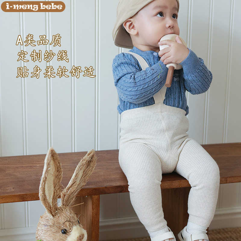 📚 爆款举重裤ins风宝宝长短裤 秋冬高腰儿童背带裤针织婴儿打底