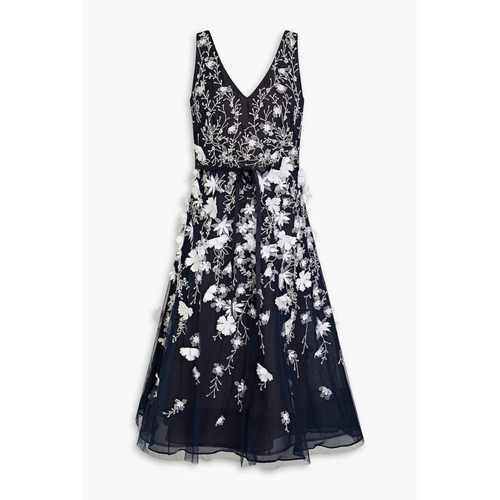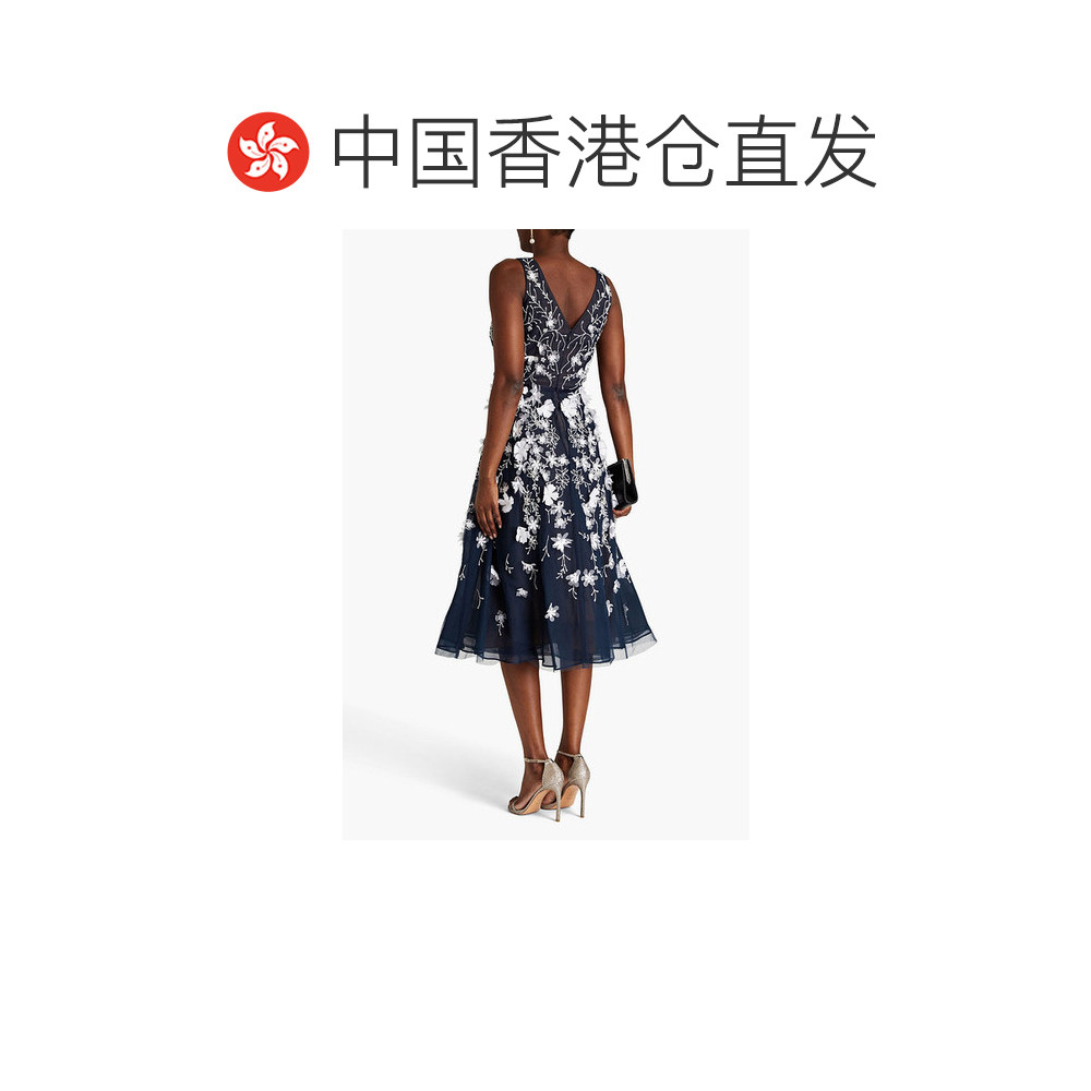 📚 1h可退 香港直邮MARCHESA NOTTE 女士 精饰薄纱中长连衣裙 N55M28