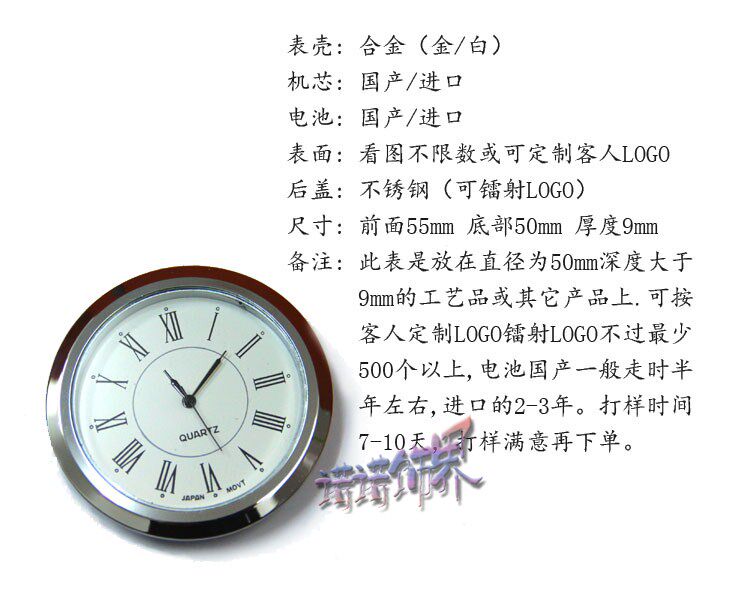 📚 钟胆 工艺表头 DIY表 汽车水晶表心台表 表芯 钟但(大小50X55X9)