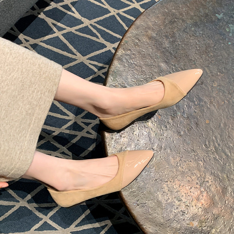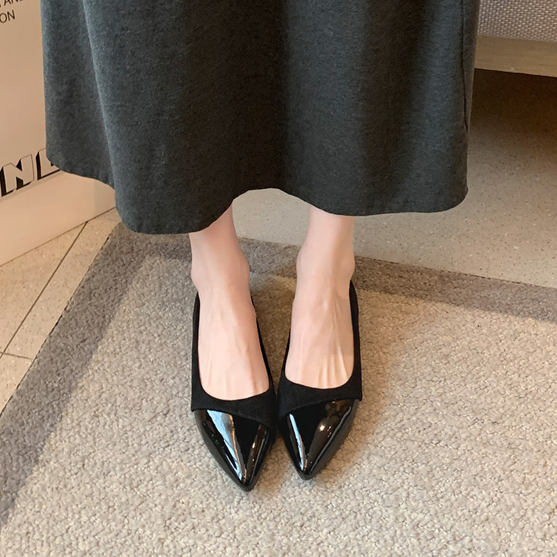 📚 脚胖脚宽女鞋春平底一脚蹬尖头胖mm黑色气质拼接特大码单鞋41-44