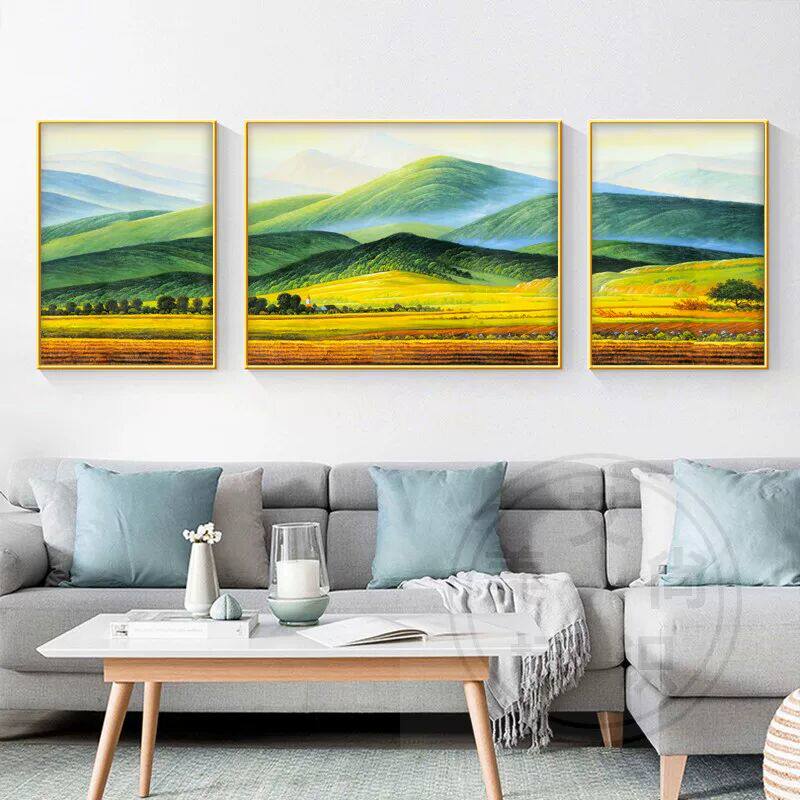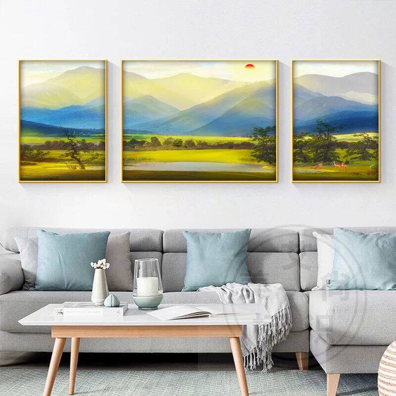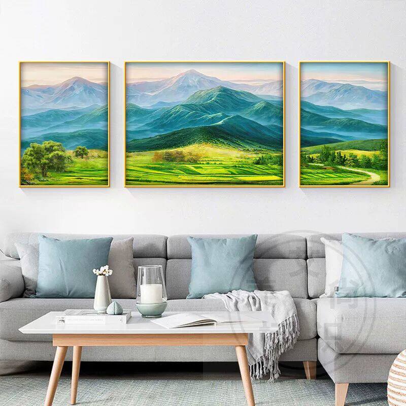 📚 西墙挂画客厅背景墙壁画绿水青山靠山图山水画三联画巨人山装饰画