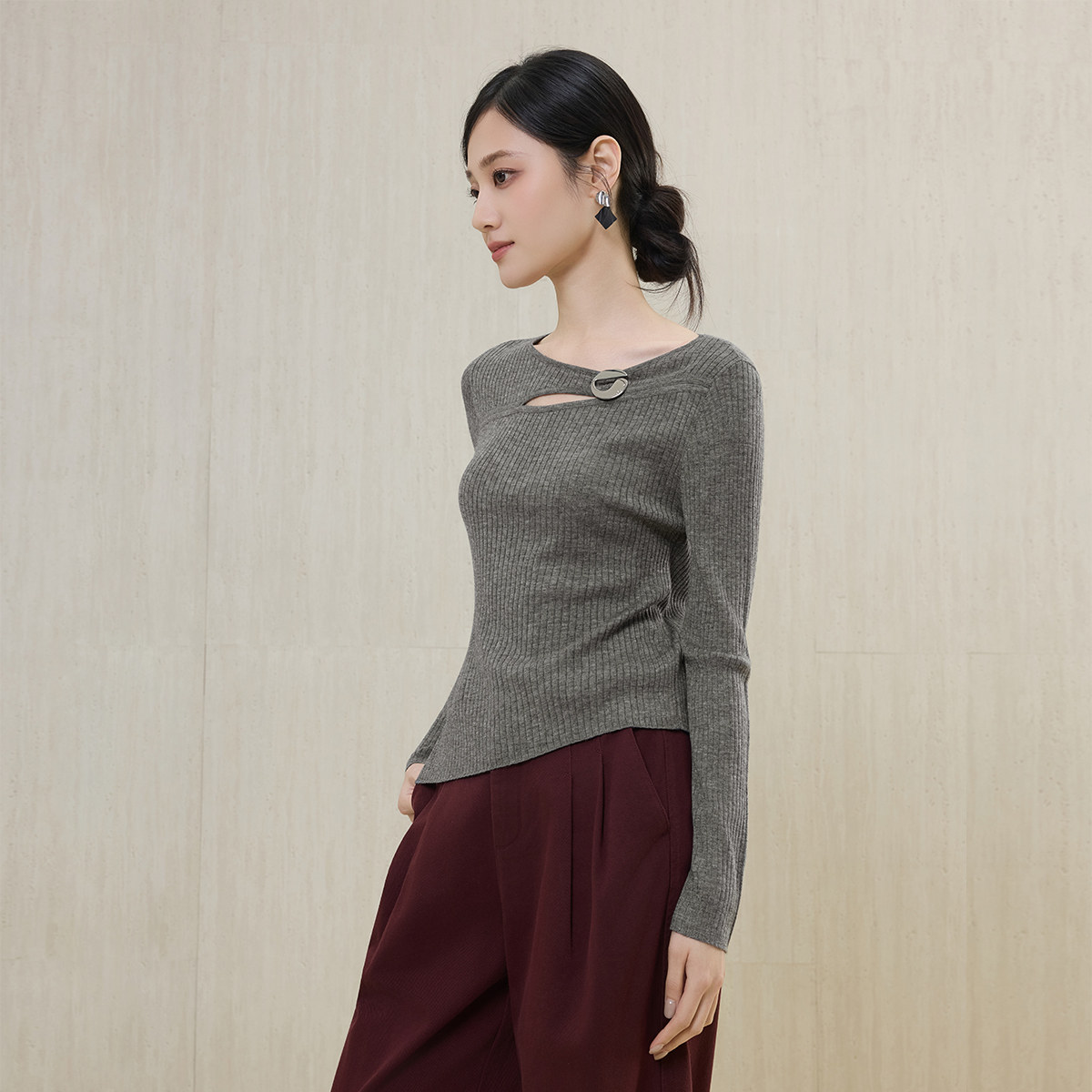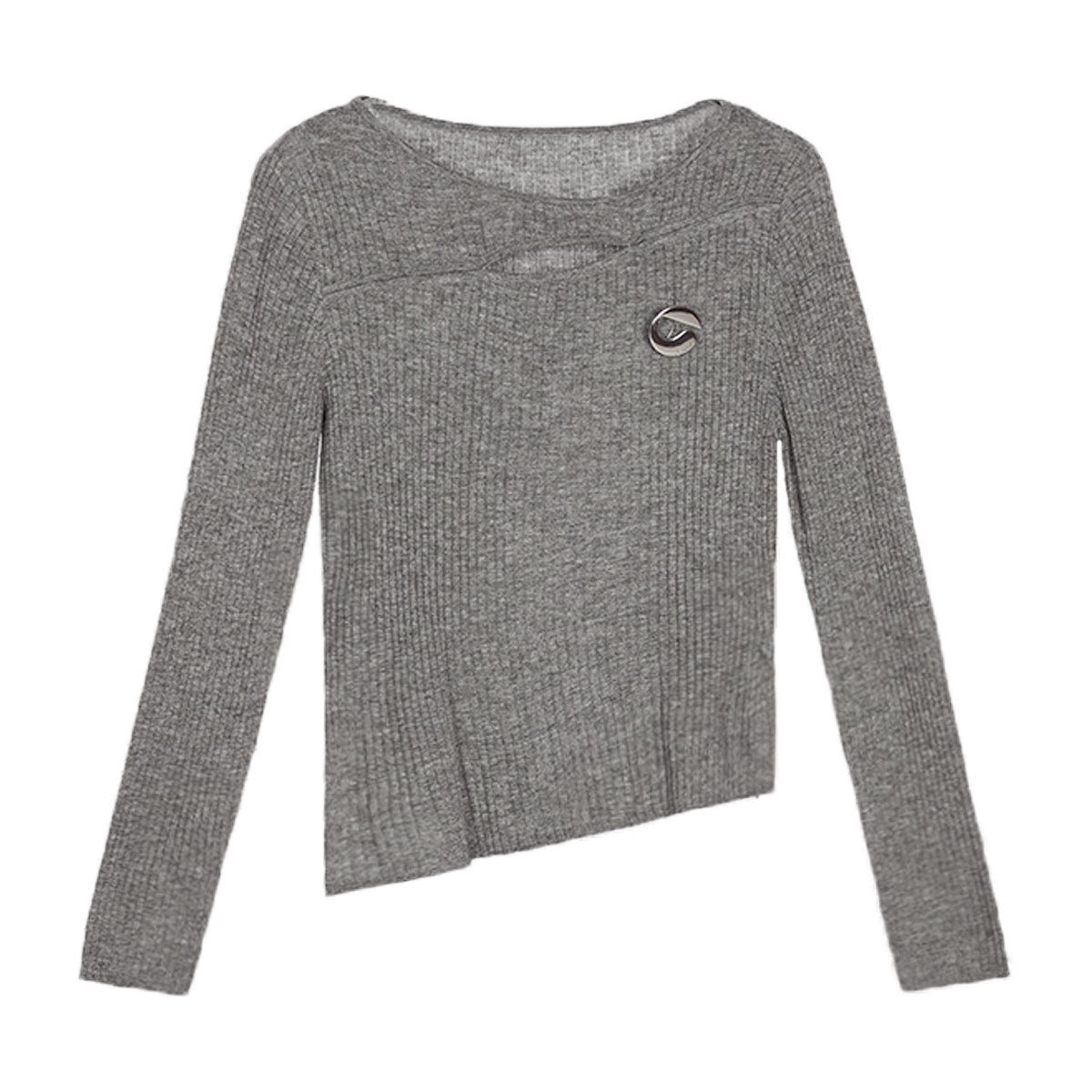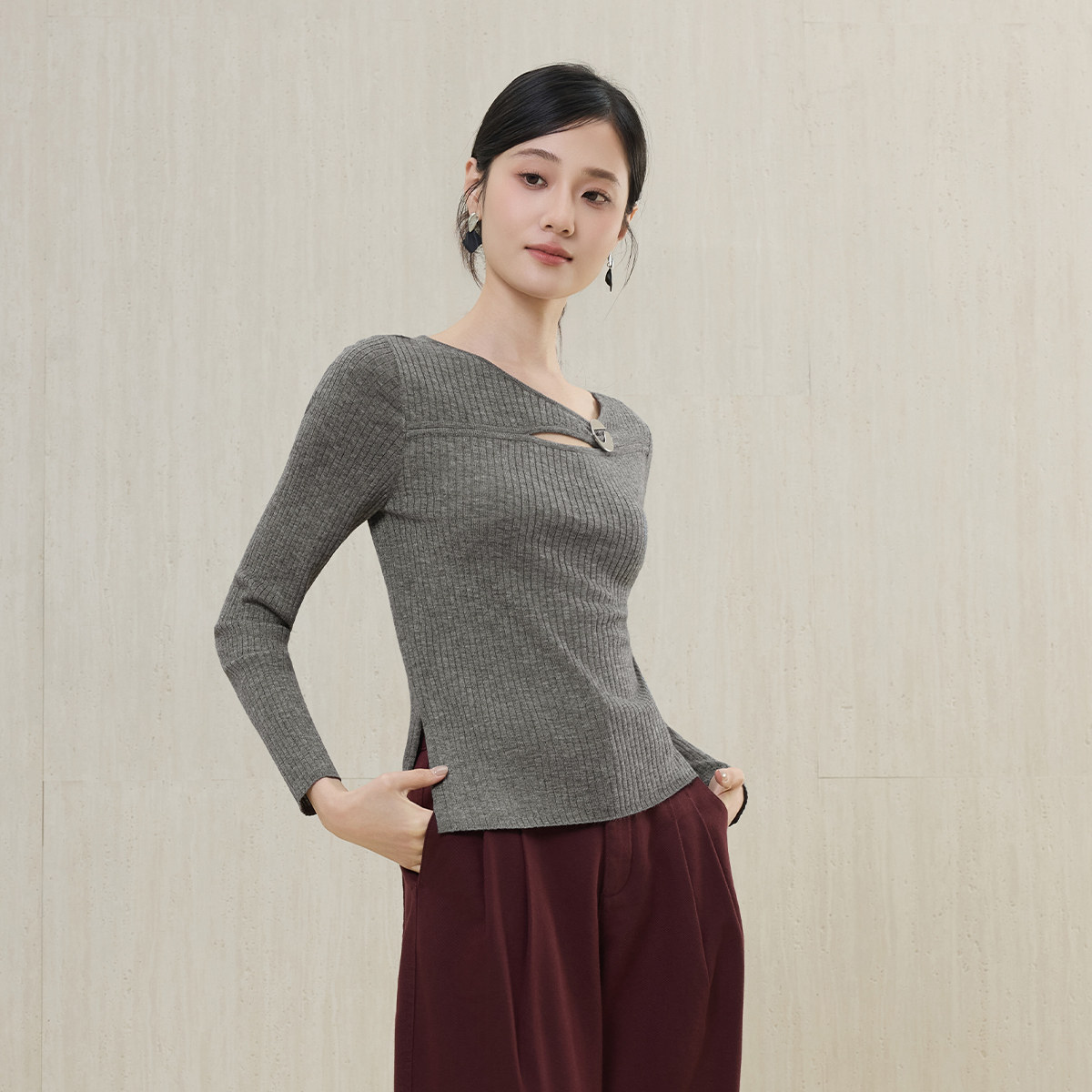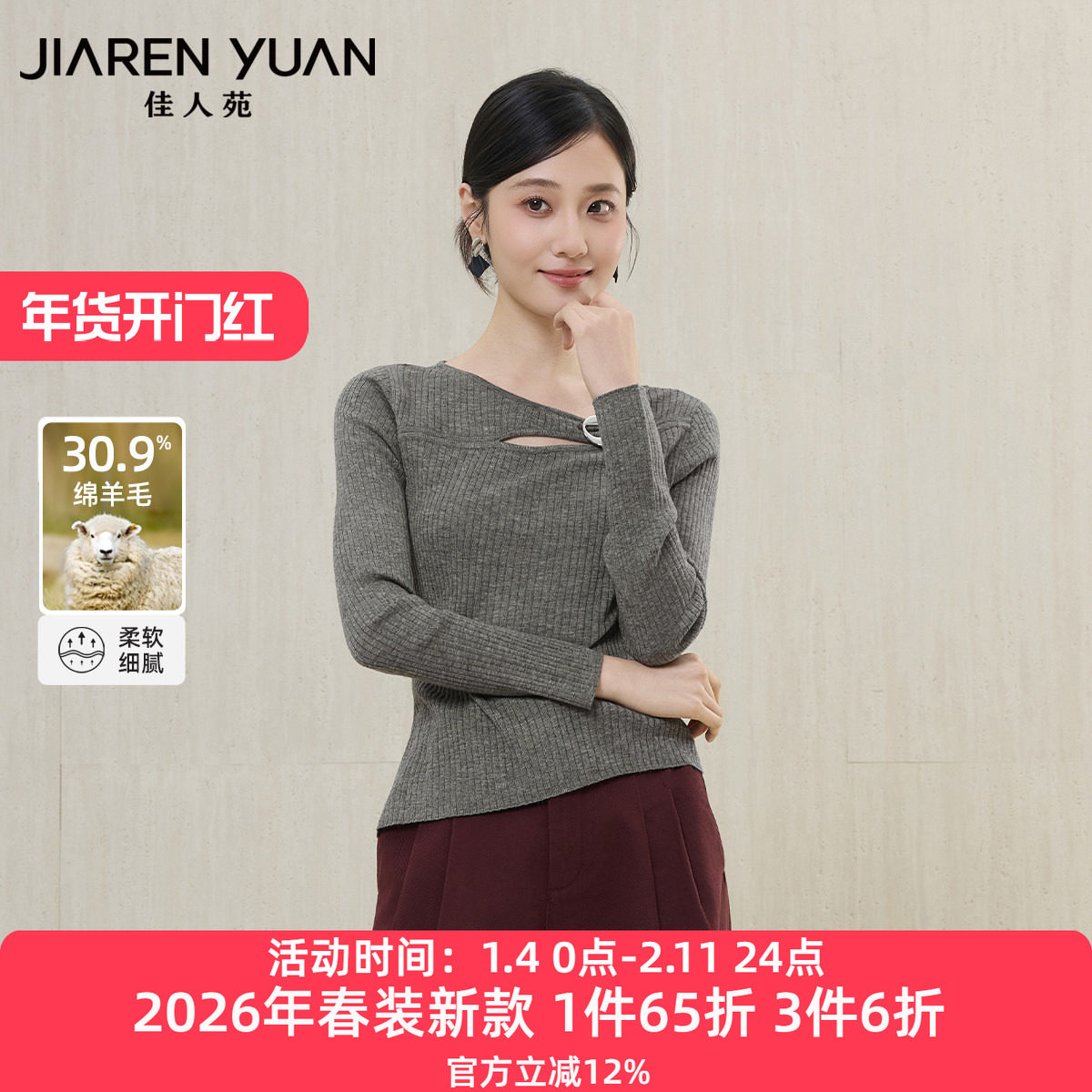 📚 佳人苑针织衫女2026年春季新款圆领镂空设计不对称针织上衣时尚