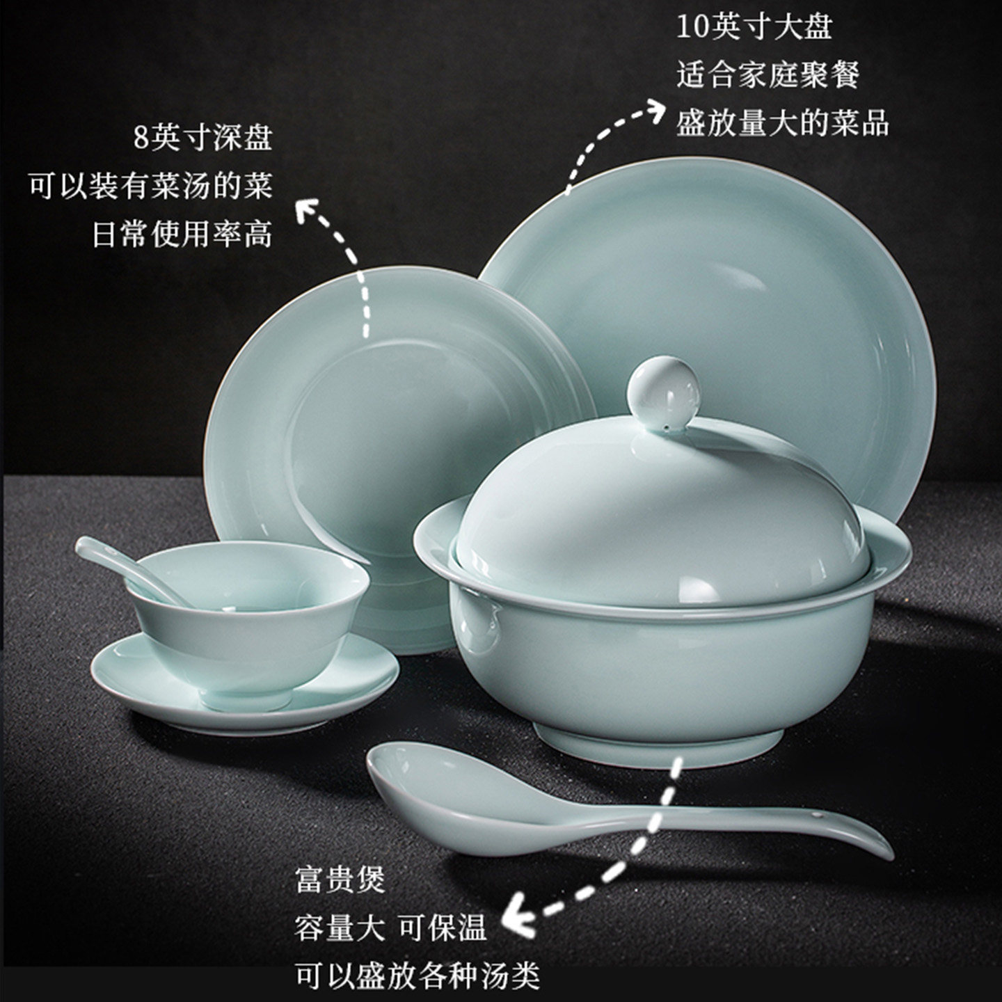 📚 景德镇影青瓷餐具陶瓷碗盘家用中式高温瓷盘子高白瓷饭碗面碗餐盘