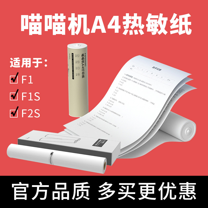 📚 PAPERANG喵喵机F1/F2S/F1S//F3s/A4尺寸F1系列专用热敏官方打印纸