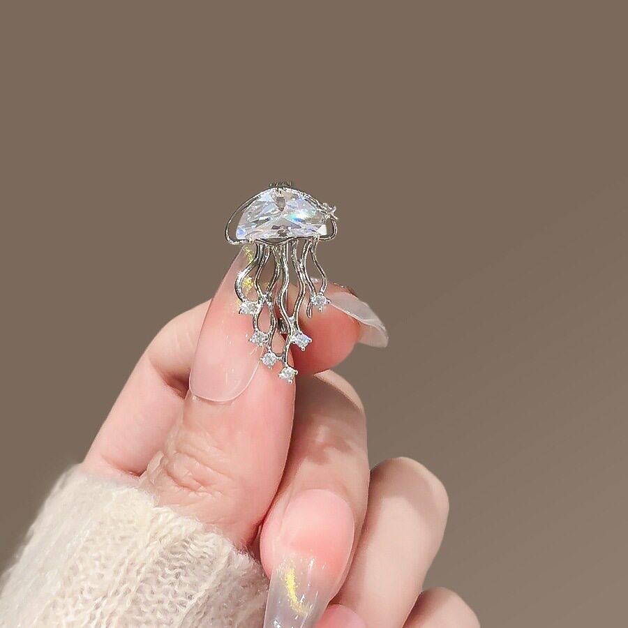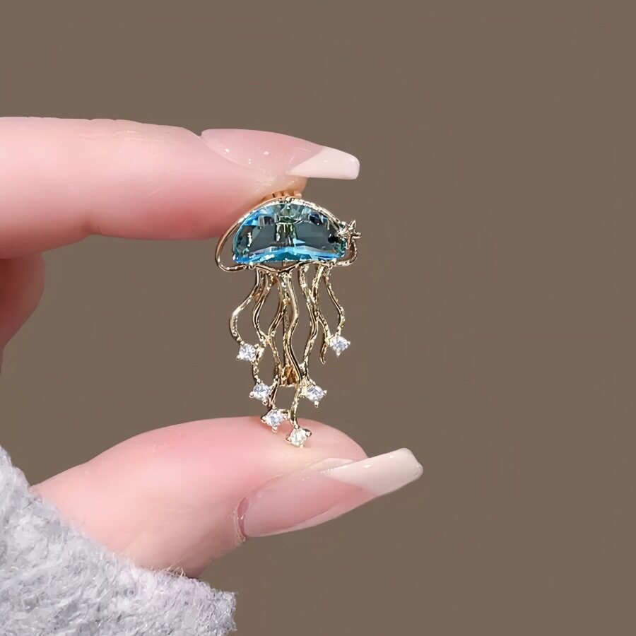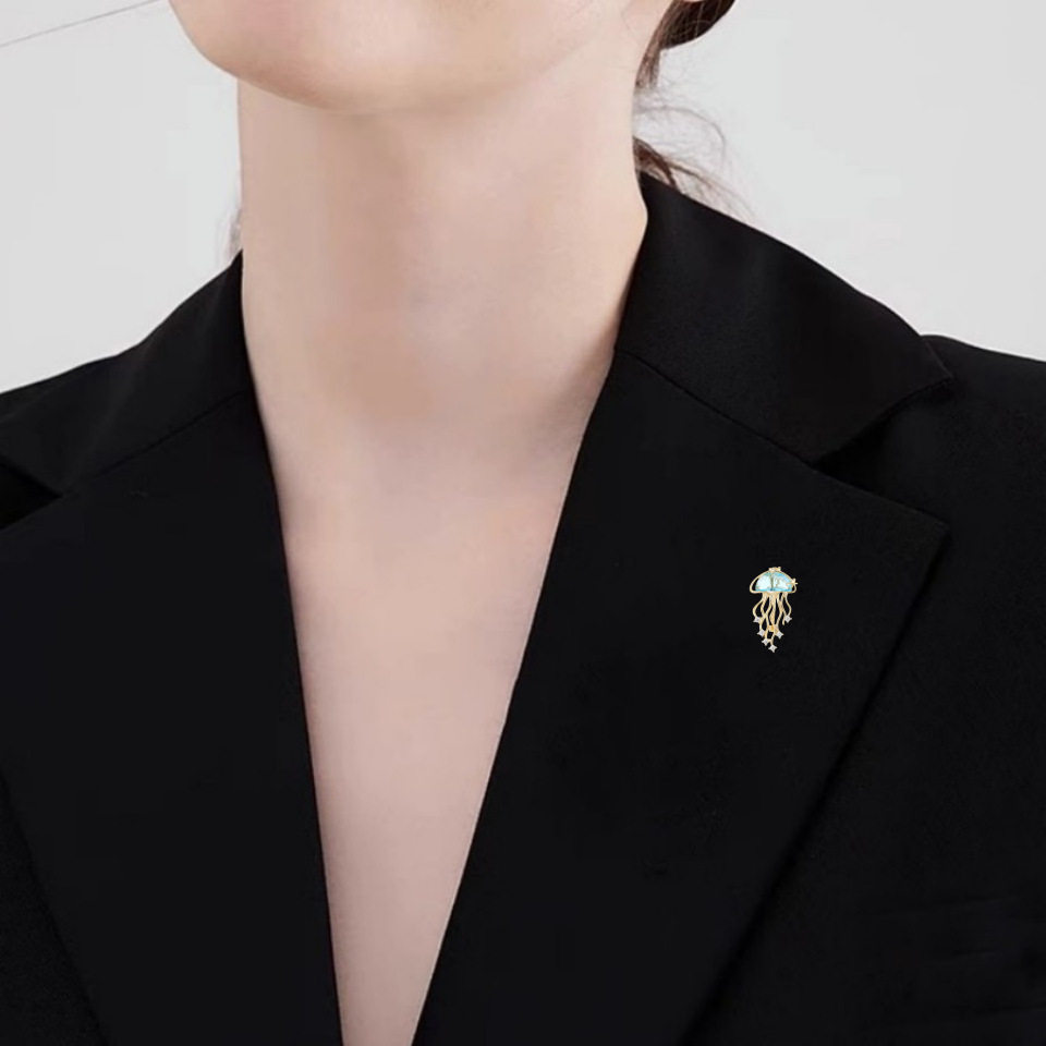 📚 新款超闪水母胸针气质蓝色海洋生物别针高级感西装毛衣胸花配饰女