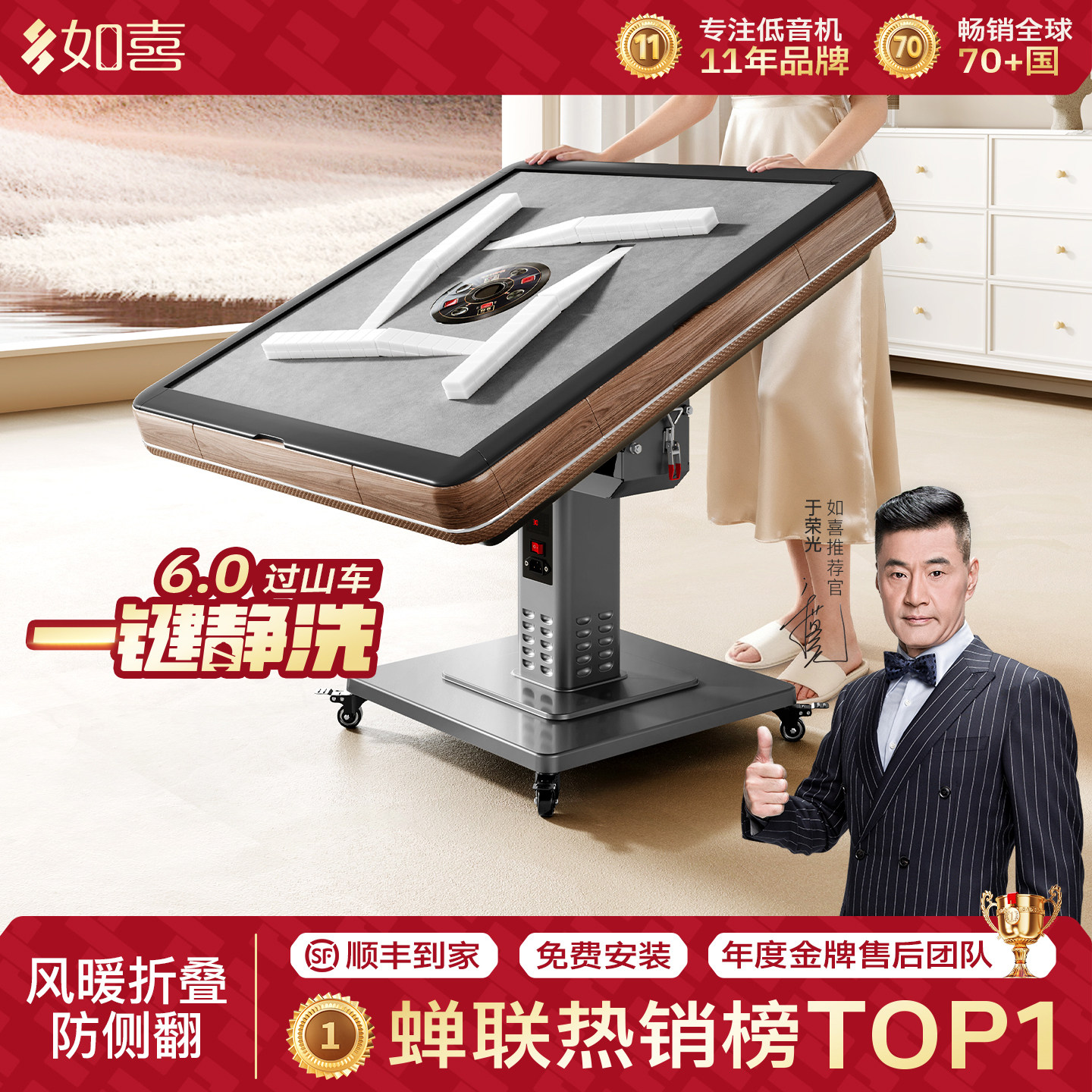 📚 如喜【风暖防侧翻】旋风过山车麻将机全自动家用餐桌两用麻将桌