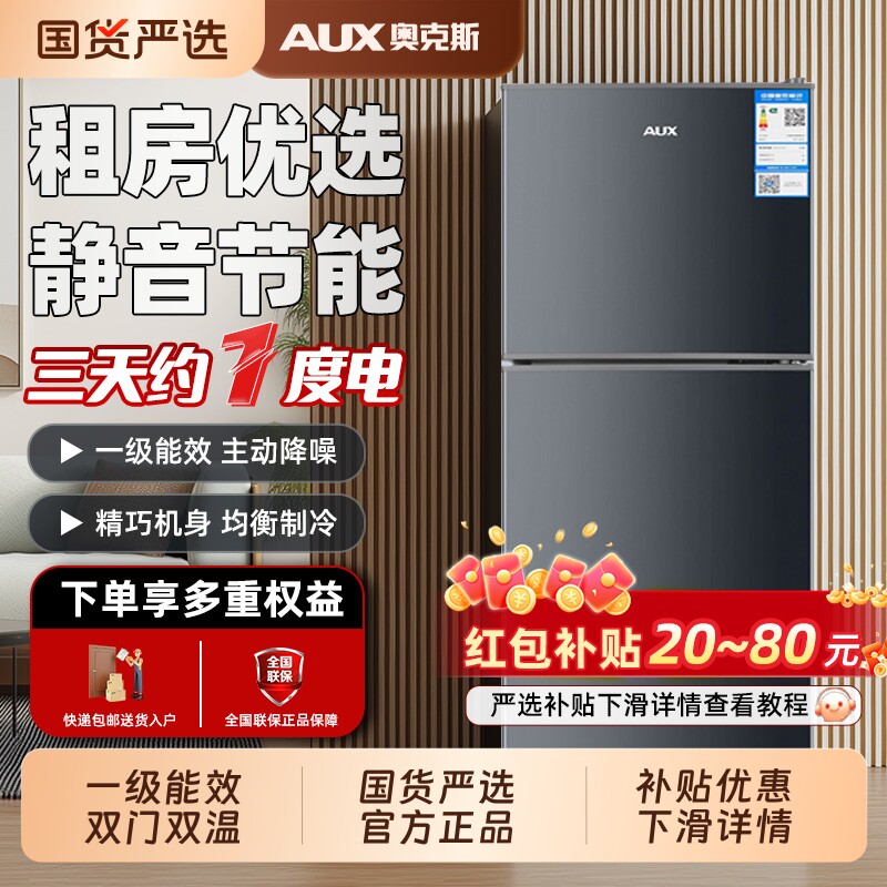📚 奥克斯冰箱家用小型【一级能效】双开门双门宿舍出租房节能电