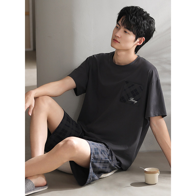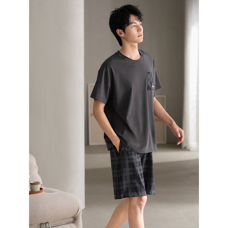 📚 睡衣男士夏季纯棉短袖短裤薄款夏天男款休闲大码高级感夏款家居服