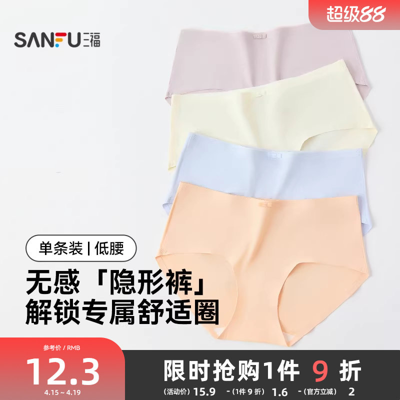 📚 三福女低腰不夹臀内裤 贴边无痕轻薄舒适半平角裤女470522