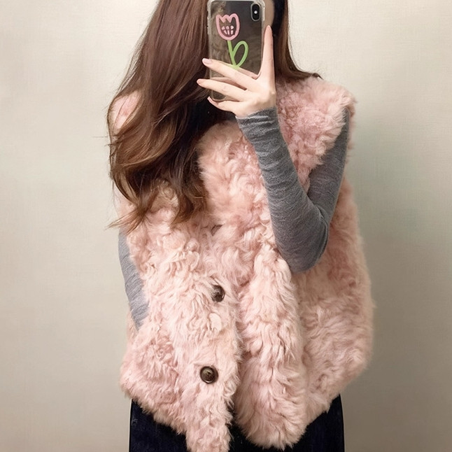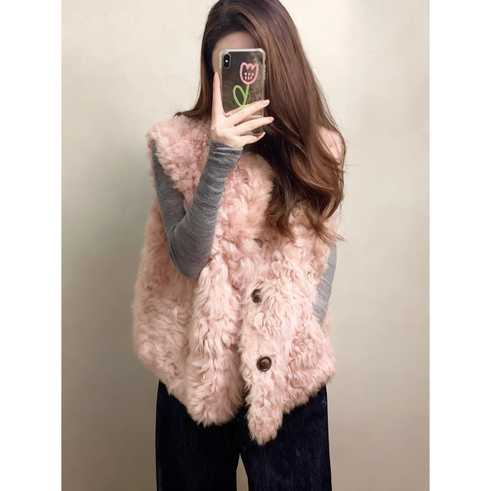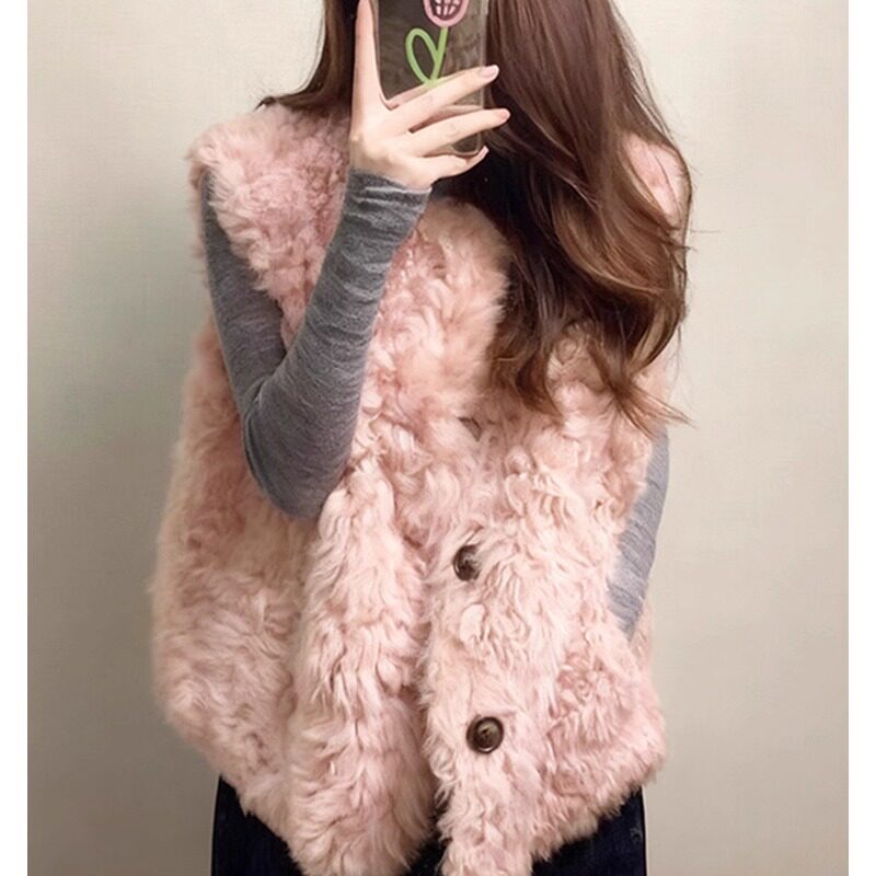 📚 韩系千金风超好看叠穿粉色坎肩仿羊羔毛绒马甲外套女款2025新款冬