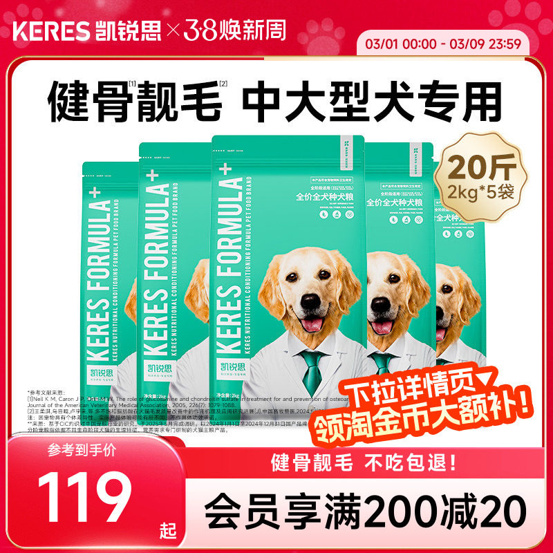 📚 凯锐思狗粮柯基边牧拉布拉多萨摩耶金毛柴犬中大型犬专用犬粮20斤