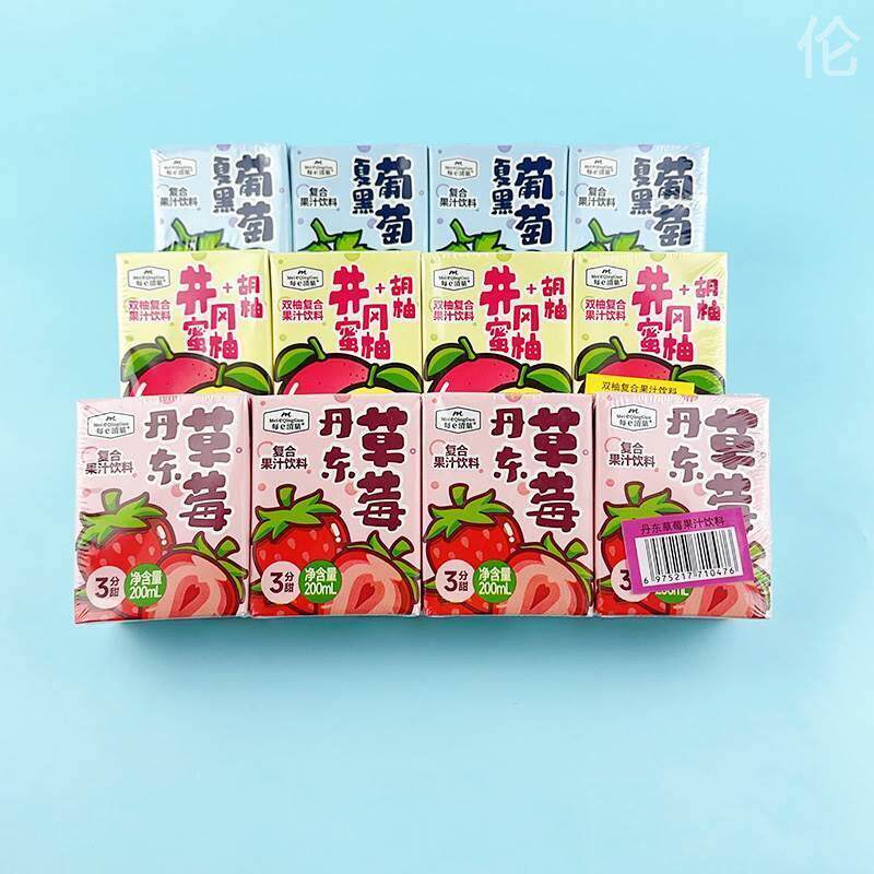 📚 每e清菓果汁饮料丹东草莓汁葡萄汁果汁200ml*4瓶
