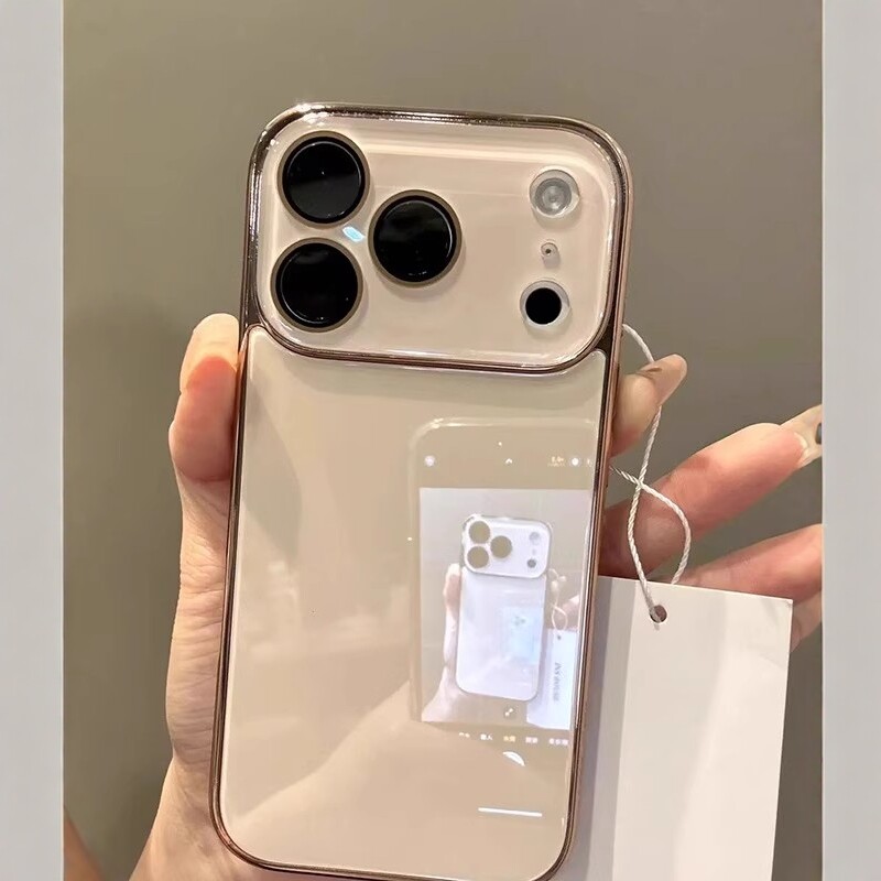 📚 樱粉色适用苹果17promax手机壳新款高级感玻璃外壳带镜头膜iphone16Pro电镀女款Air镜头全包15PM防摔14保护套