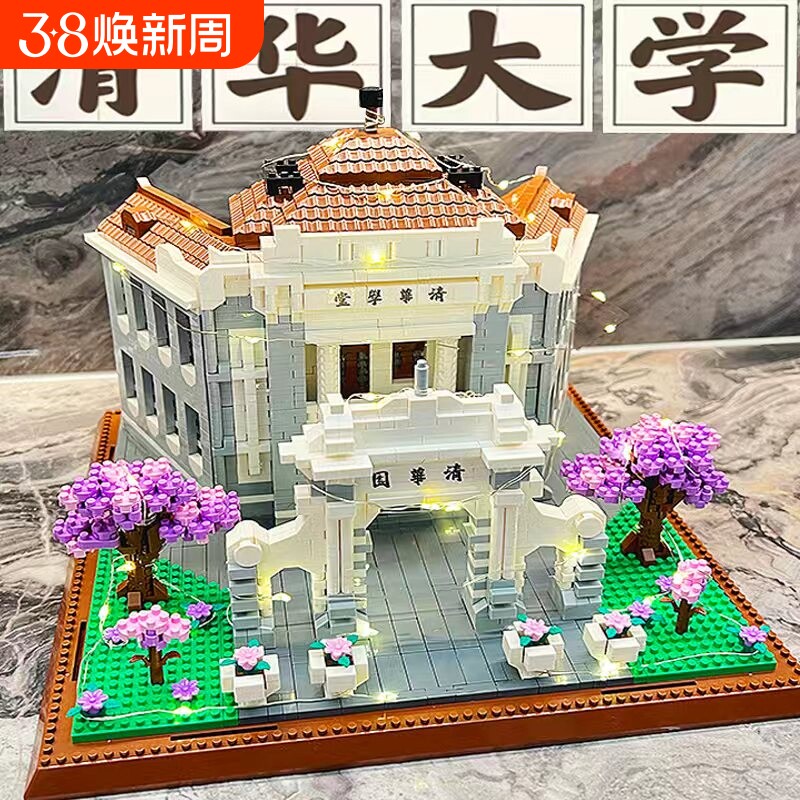 📚 北京清华大学积木四大名校建筑模型高难度巨大型男孩益智拼装玩具