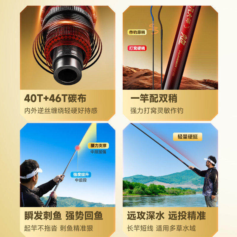 📚 创威非凡大师炮竿9米长杆打窝竿超轻超硬传统钓10/13m手杆钓鱼竿