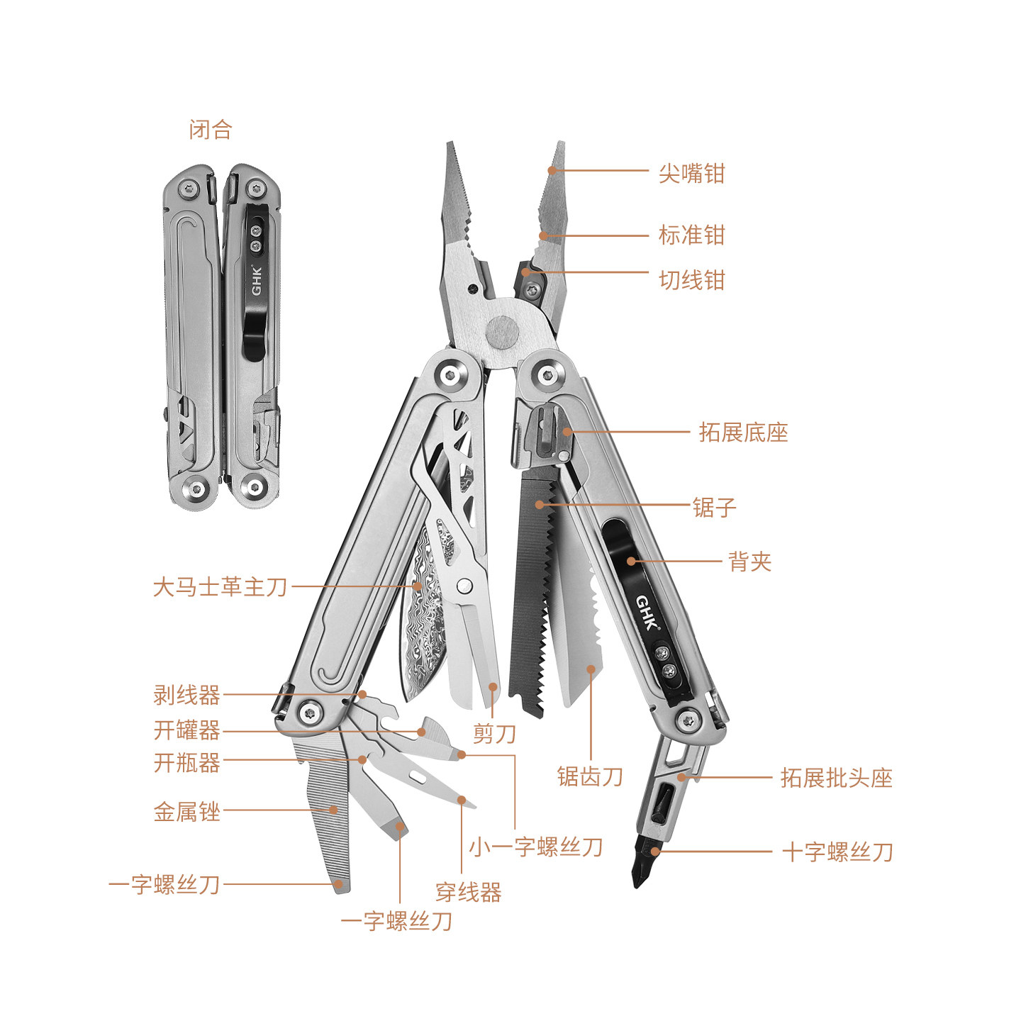 📚 鸿丰锋焰多功能钳应急救援剪刀便携车载工具户外多用组合瑞士刀