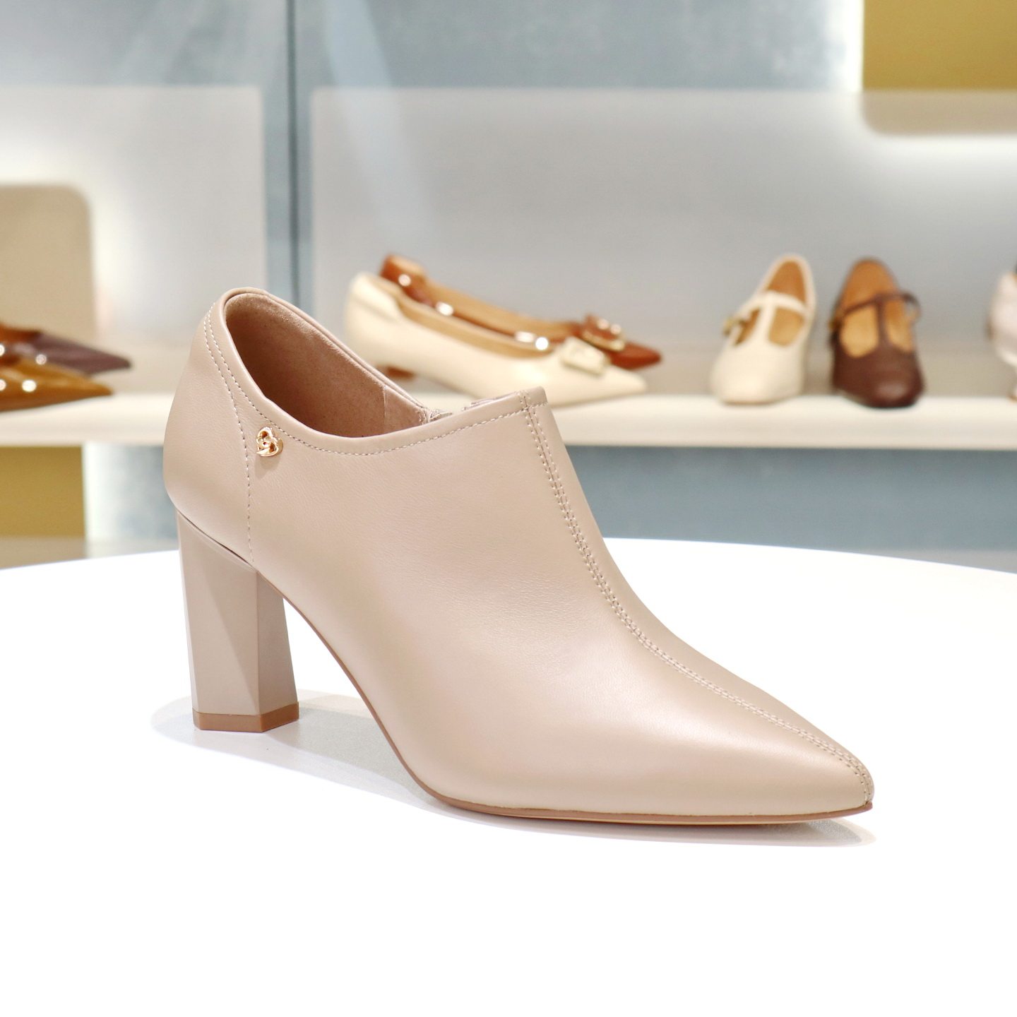 📚 COMELY康莉2026粗跟羊皮高跟鞋深口尖头女鞋单鞋KYQ56560DU01CM5