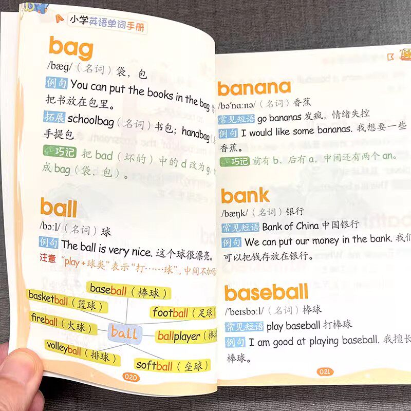 📚 小学英语单词手册一本通正版全彩版英语单词大全小学生多功能英语词典三四五六年级上册下册词汇语法字典小升初分类书英语阅读背诵