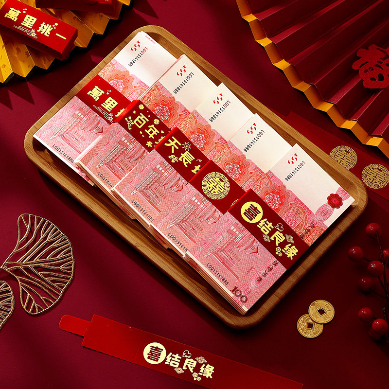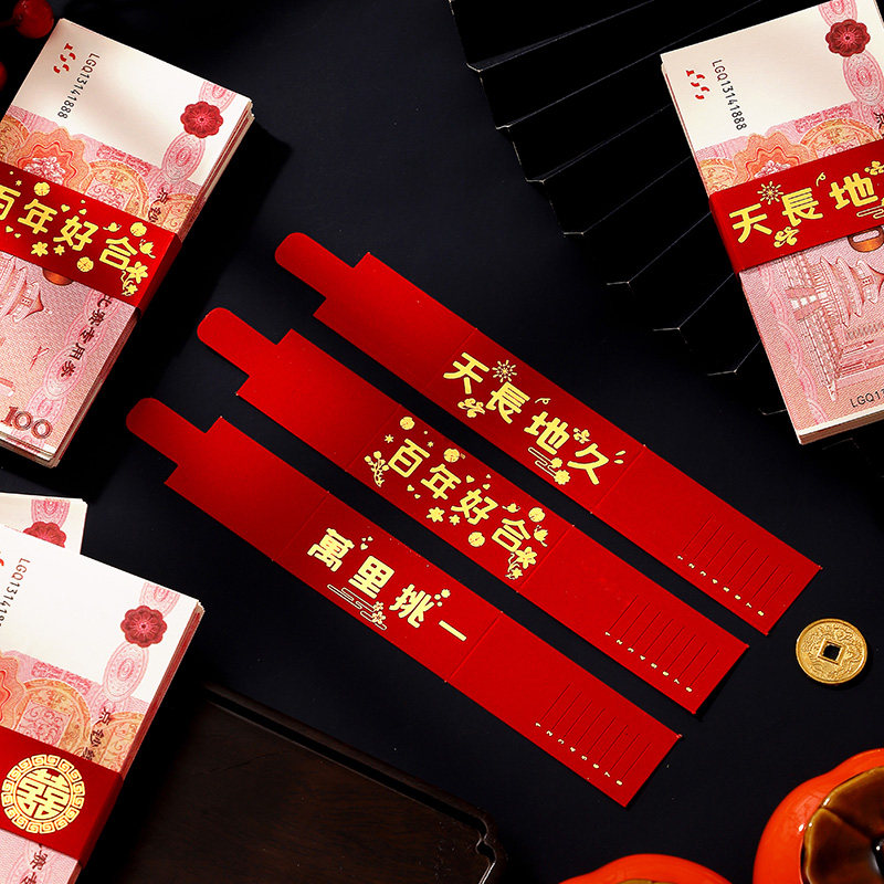 📚 红包袋礼金封条结婚一万元卡钱套订婚彩礼钱封捆钱条喜字婚礼专用