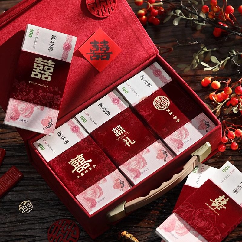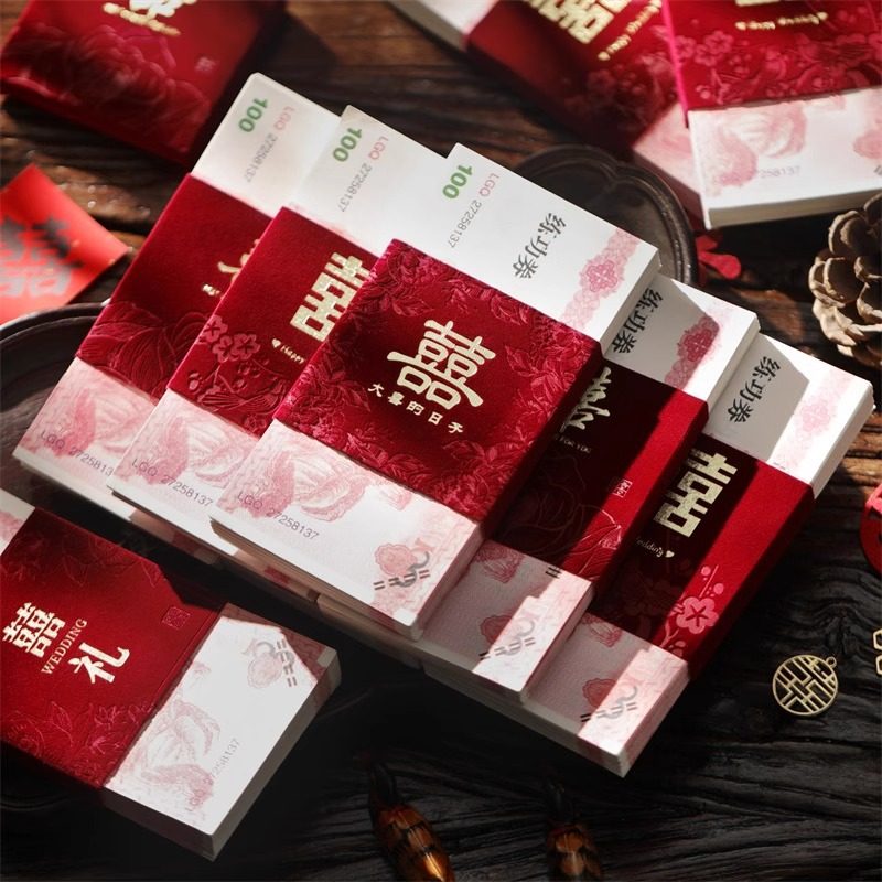 📚 一万元捆钱套红包袋订婚礼喜字专用利是封彩礼金封条结婚用品大全