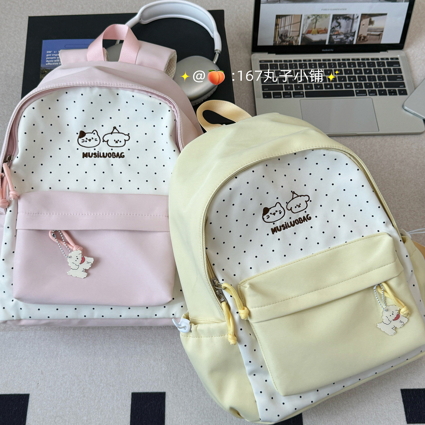 📚 书包初中女生波点可爱刺绣少女心简约百搭双肩包新款少年感背包女