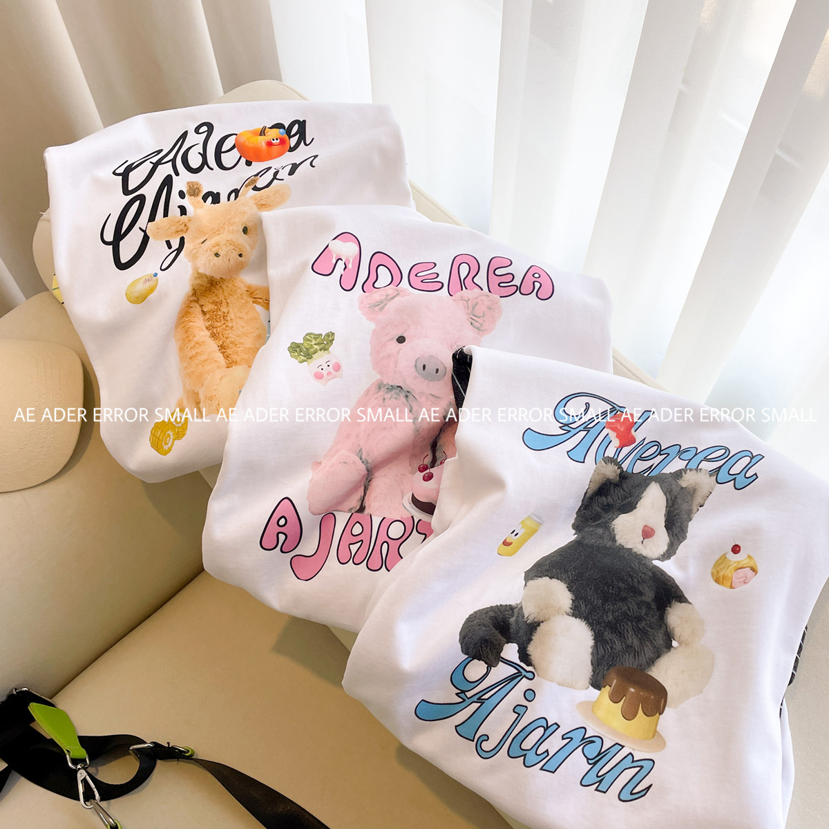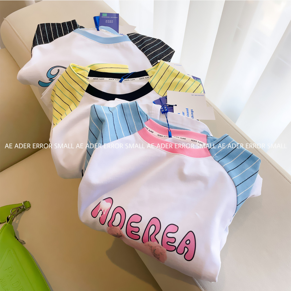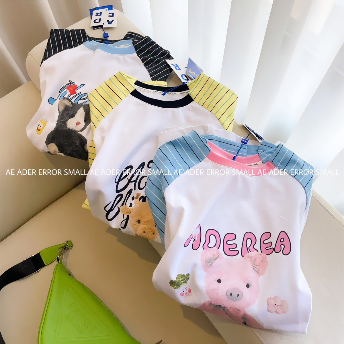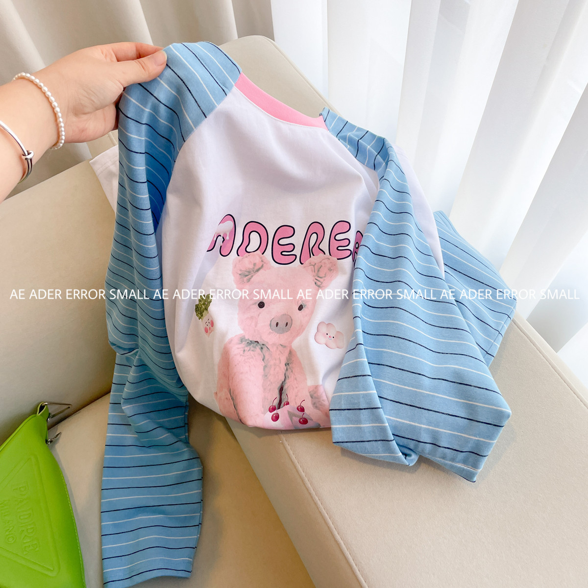 📚 ader error small长袖T恤女春秋条纹拼接卡通宽松圆领打底衫上衣